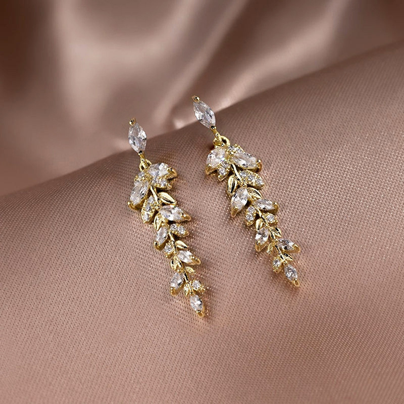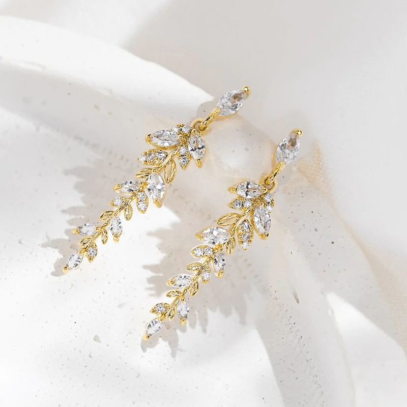 Boucles d'oreilles en laiton zircon cubique, blé, bijoux de mode & pavé de micro zircon & pour femme, Vendu par paire