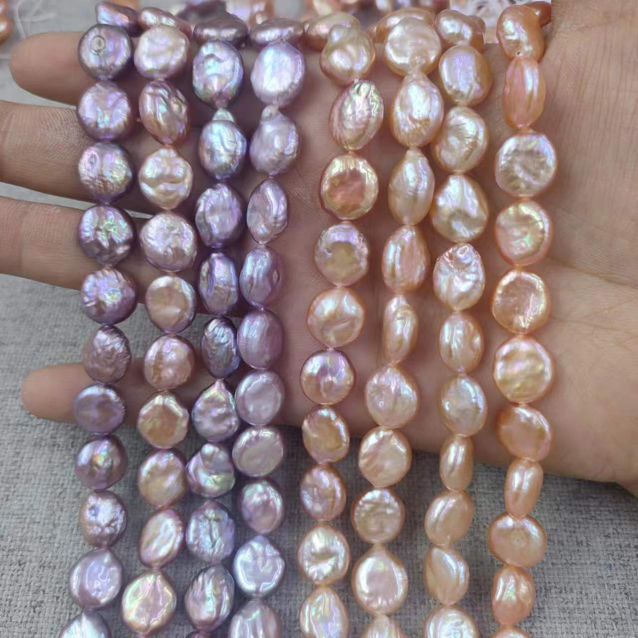 Bouton de culture des perles d'eau douce, perle d'eau douce cultivée, pièce de monnaie, DIY, plus de couleurs à choisir, about:12-13mm, Environ 29PC/brin, Vendu par brin