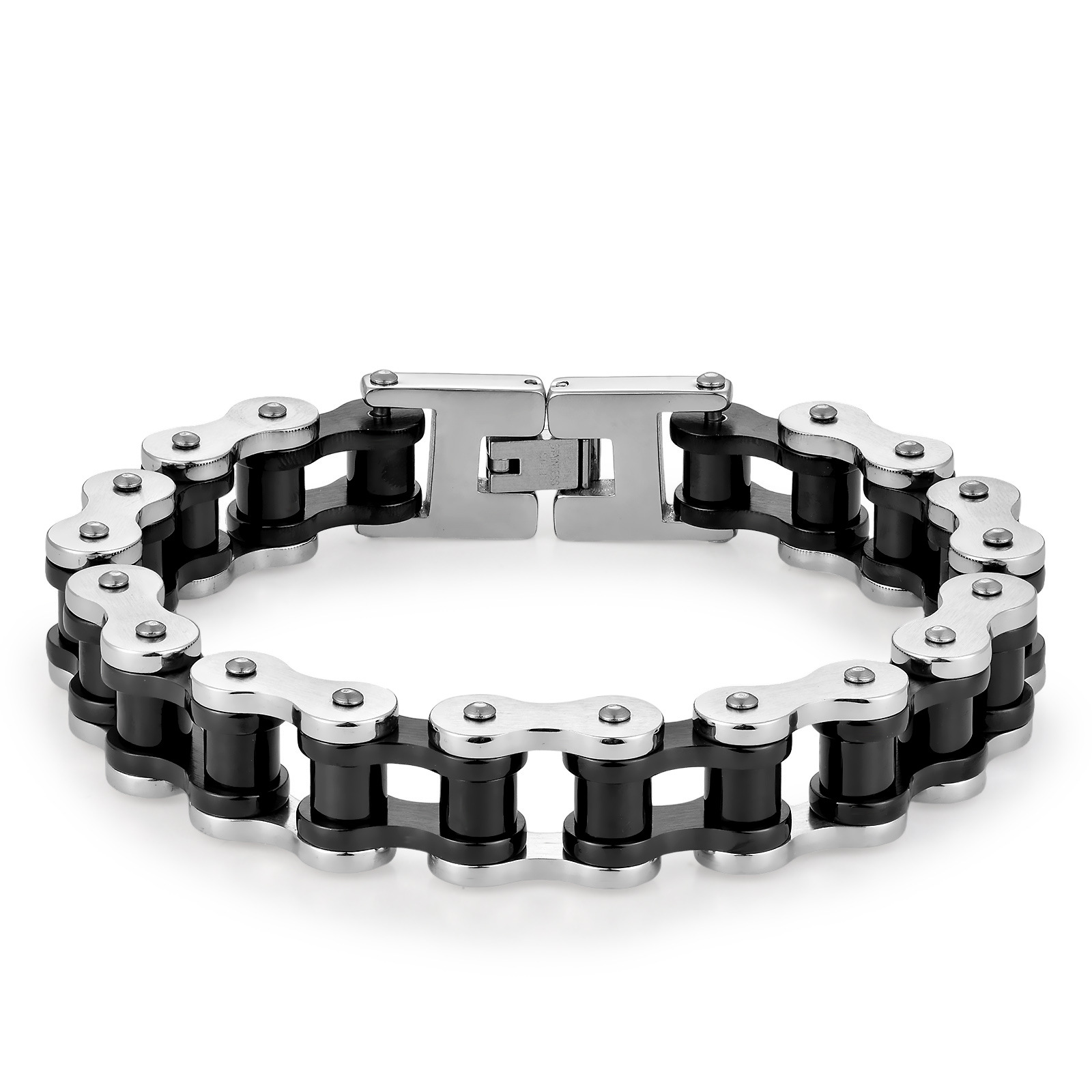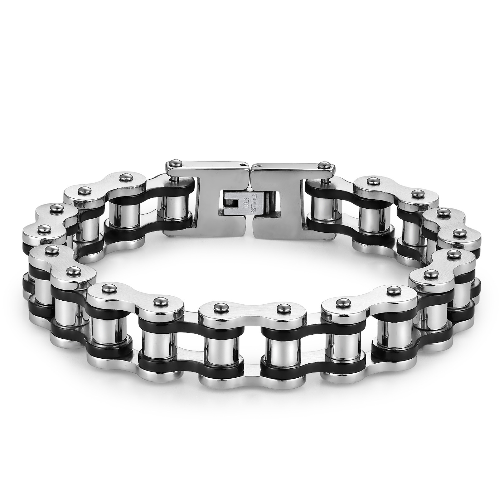 Bracelet chaîne en acier inoxydable Bike, Acier inoxydable 304, avec silicone, deux tons  Environ 9 pouce, Vendu par brin