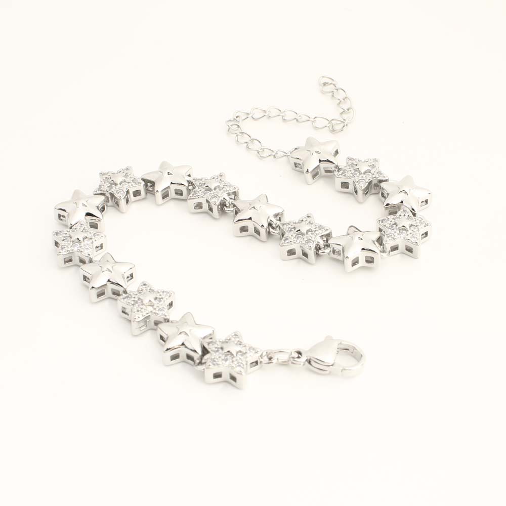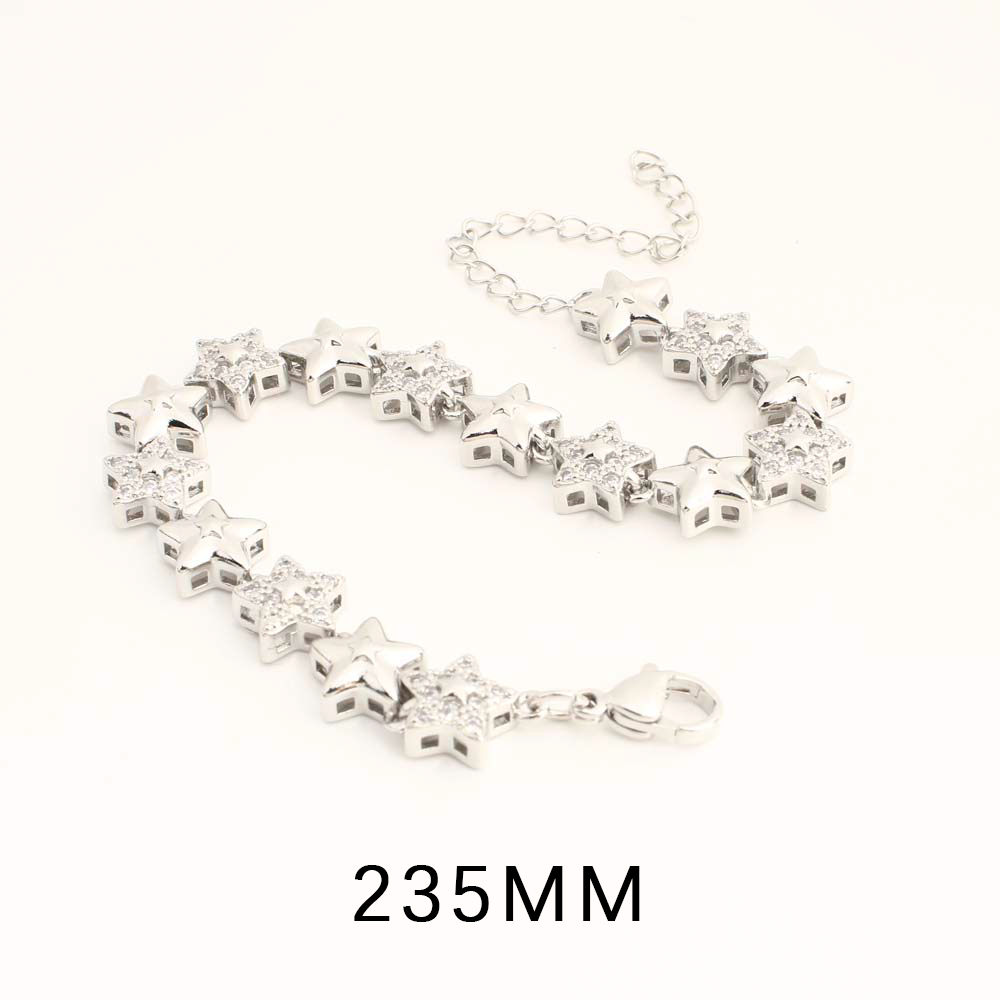 Bracelet cubique en laiton zircon pavent, avec zircon cubique, Placage de couleur argentée, réglable & pavé de micro zircon & pour femme, plus de couleurs à choisir, protéger l'environnement, sans nickel, plomb et cadmium, 190mm,9mm Environ 7.4 pouce, Vendu par brin