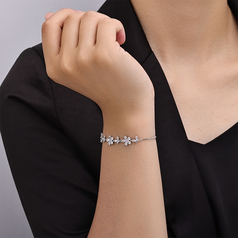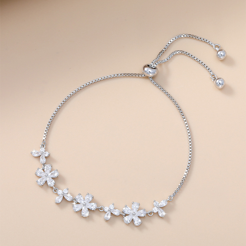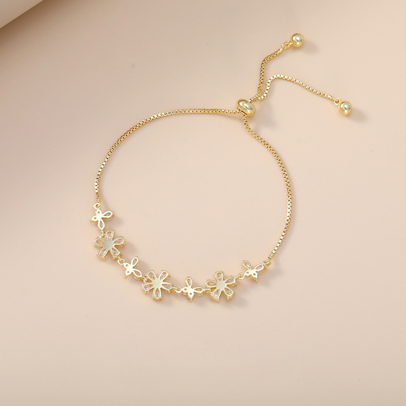 Bracelet cubique en laiton zircon pavent, fleur, Placage, réglable & chaîne de boîte & pavé de micro zircon & pour femme, plus de couleurs à choisir, Longueur:Environ 6-9 pouce, Vendu par PC