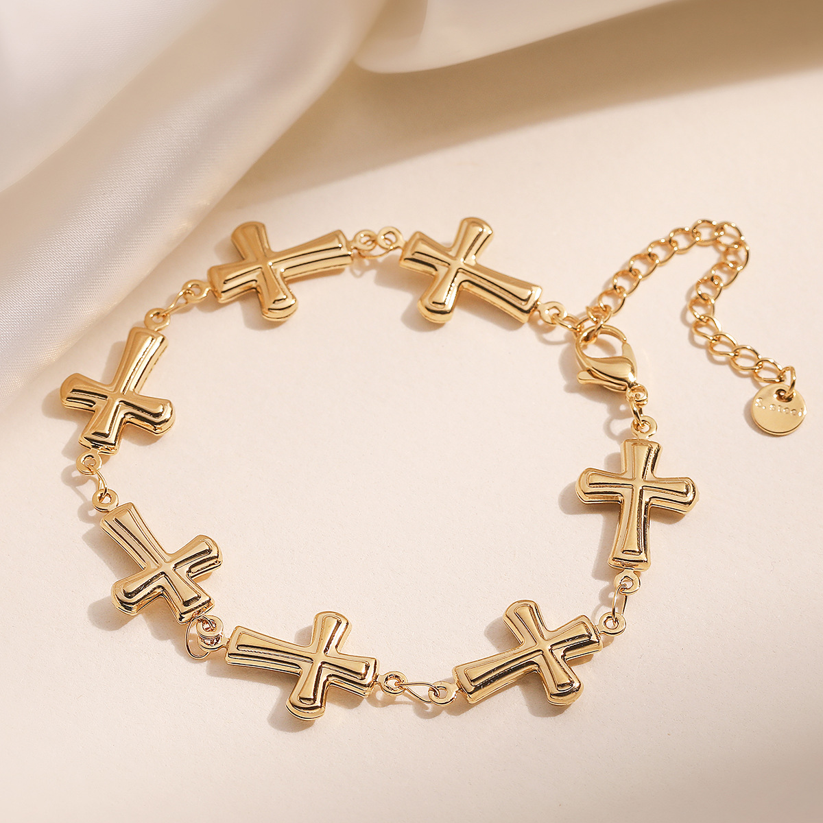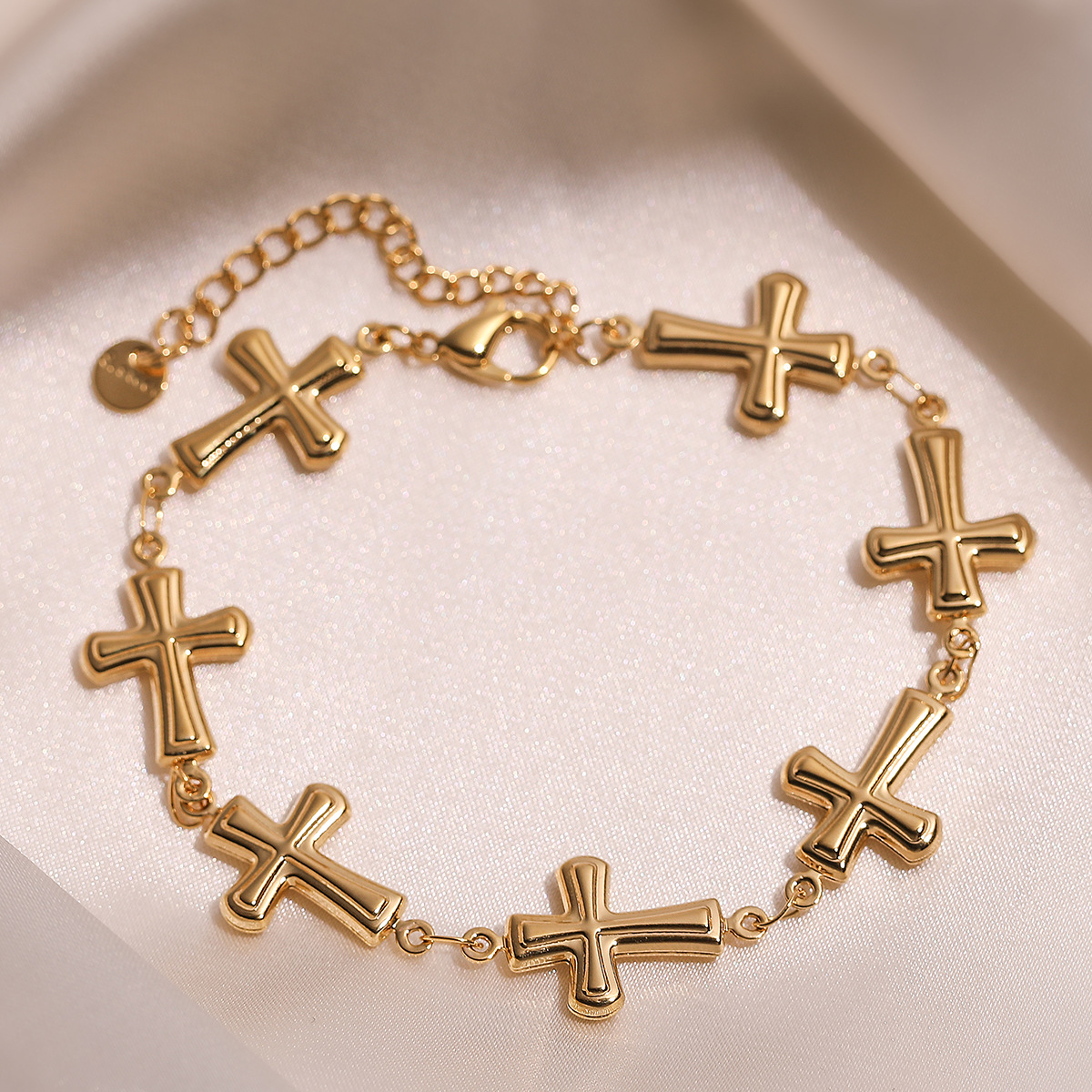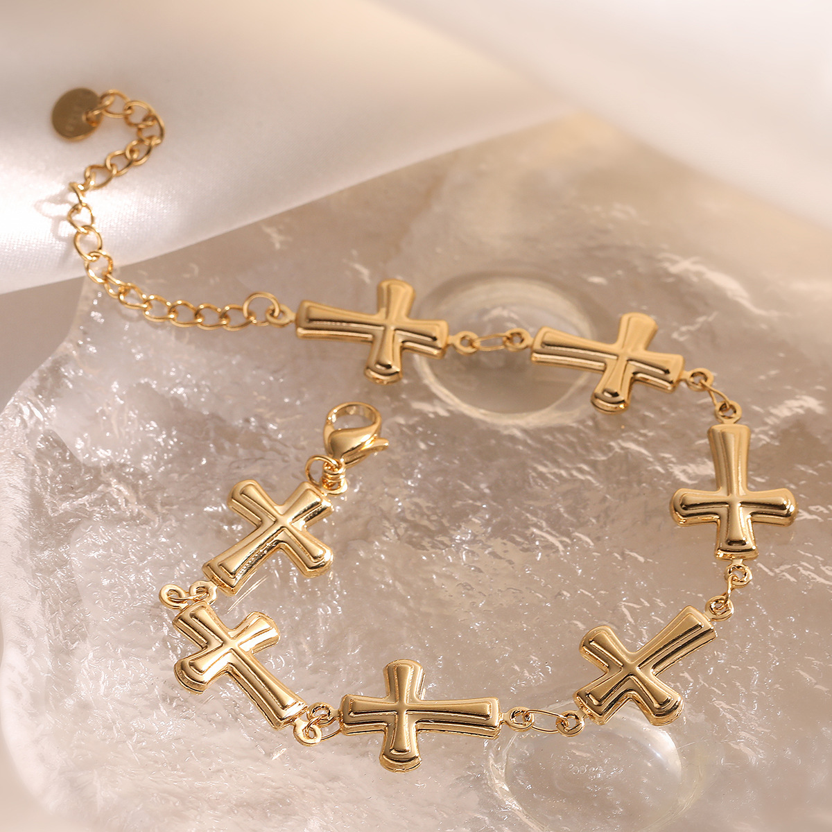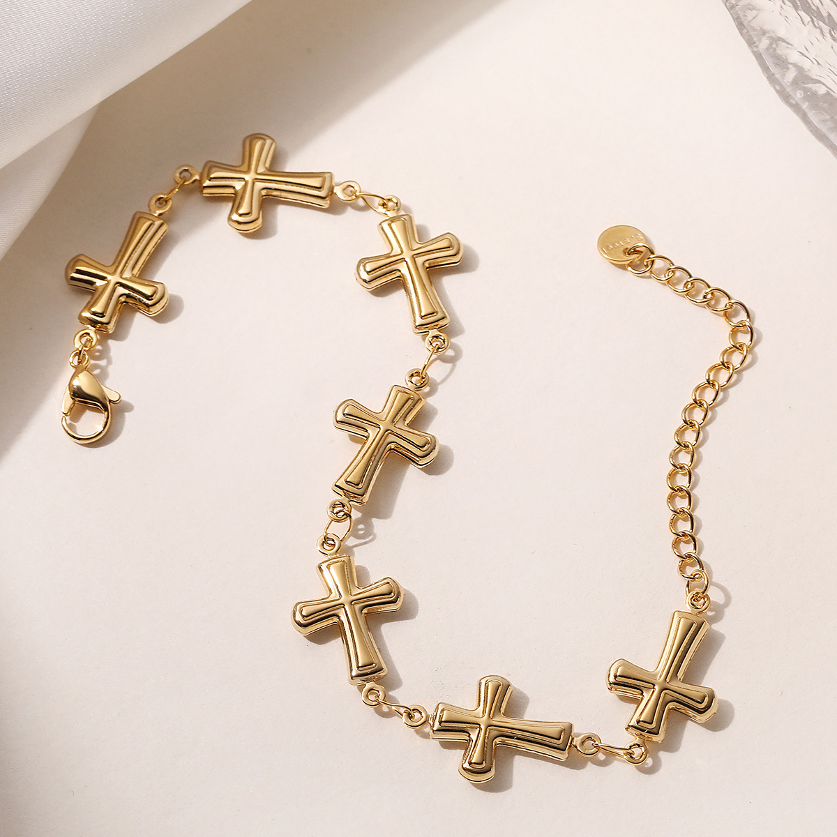 Bracelet cubique en laiton zircon pavent, Acier inoxydable 304, croix, Plaqué or 18K, bijoux de mode & pour femme, Vendu par PC