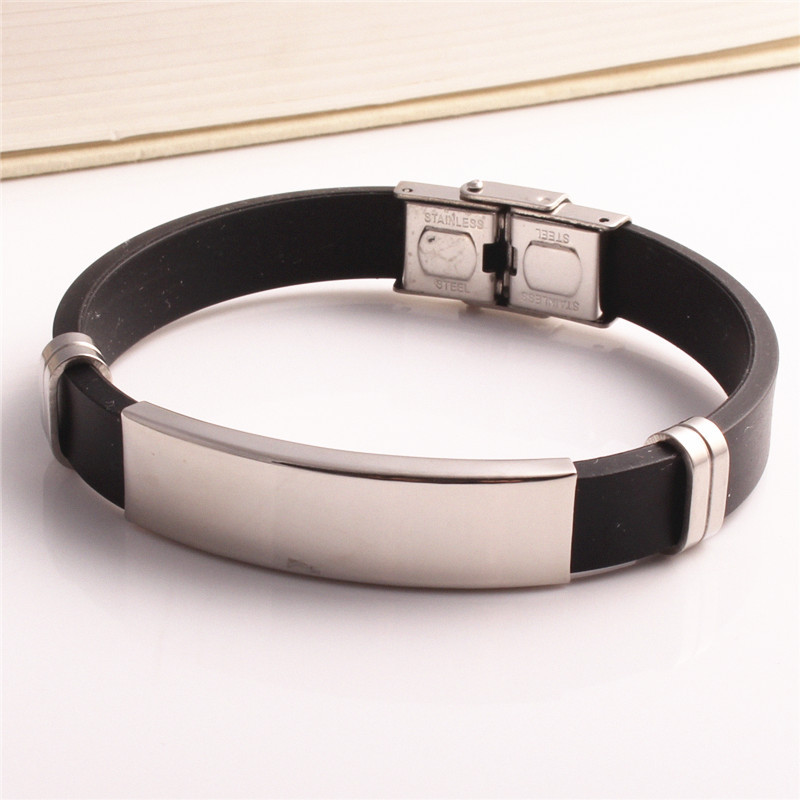 Bracelet en acier inoxydable Silicone, acier inoxydable fermoir, noire pouce, Vendu par brin