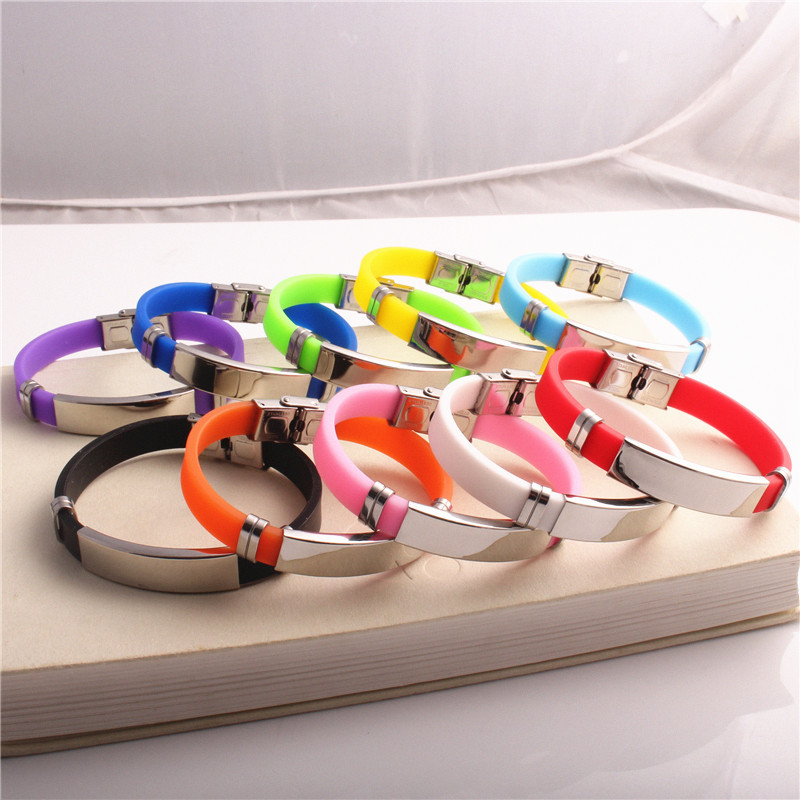 Bracelet en acier inoxydable Silicone, acier inoxydable fermoir, plus de couleurs à choisir pouce, Vendu par brin