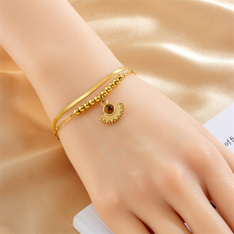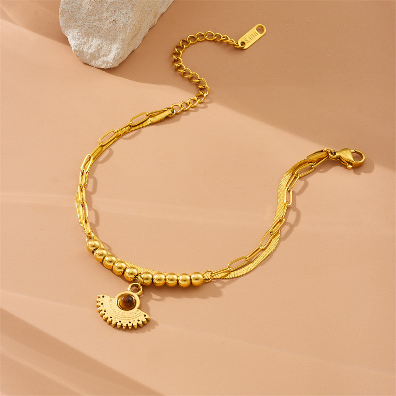Bracelet en acier inoxydable, Acier inoxydable 304, avec pierre gemme, Placage de couleur d'or, bijoux de mode, doré, Vendu par PC