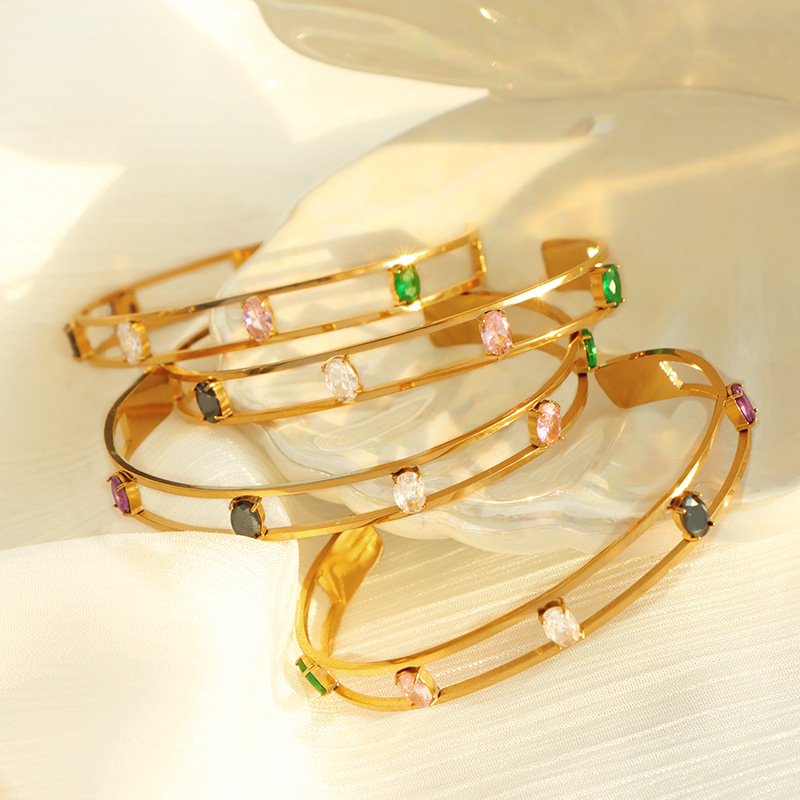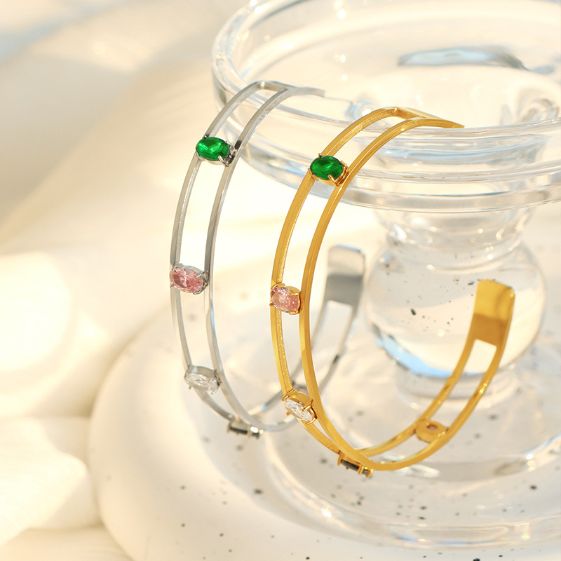Bracelet en acier inoxydable, Acier inoxydable 304, avec zircon cubique, Placage, bijoux de mode & pour femme & creux, plus de couleurs à choisir, Vendu par PC
