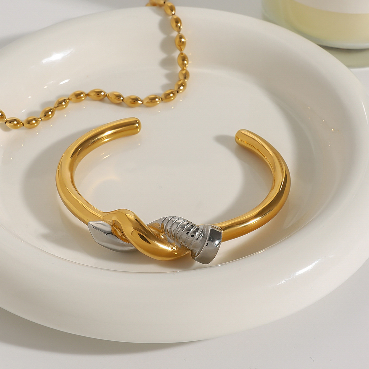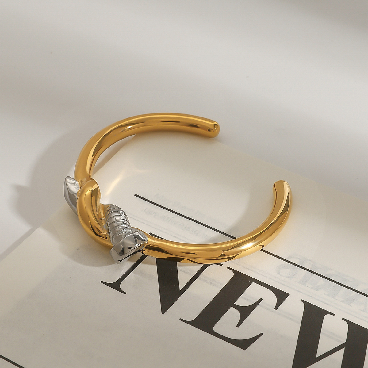 Bracelet en acier inoxydable, Acier inoxydable 304, Plaqué or 18K, bijoux de mode & pour femme & deux tons, Vendu par PC