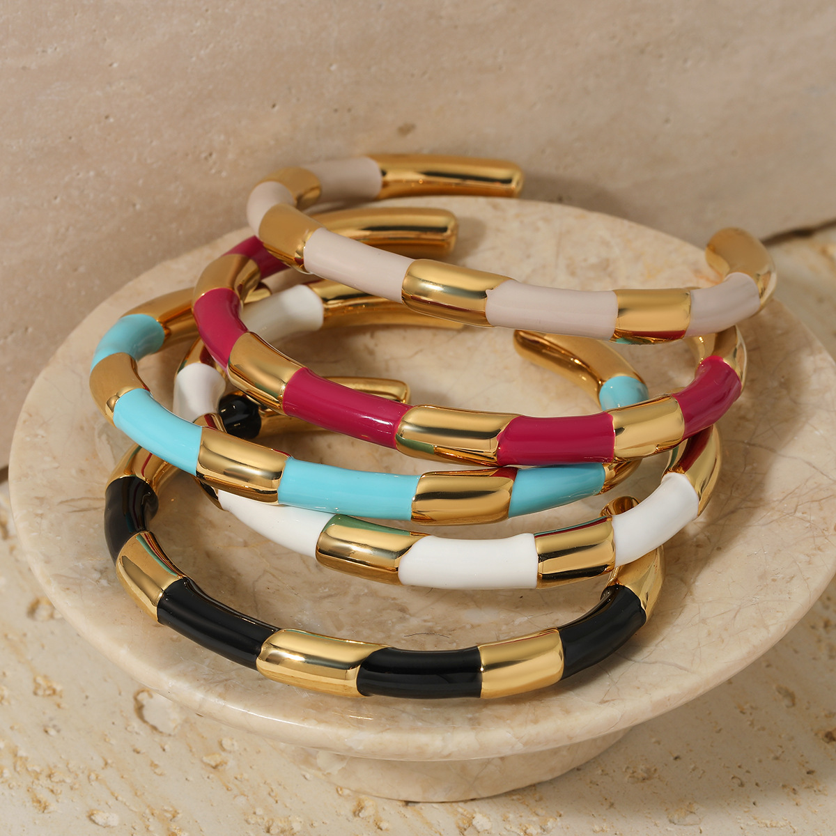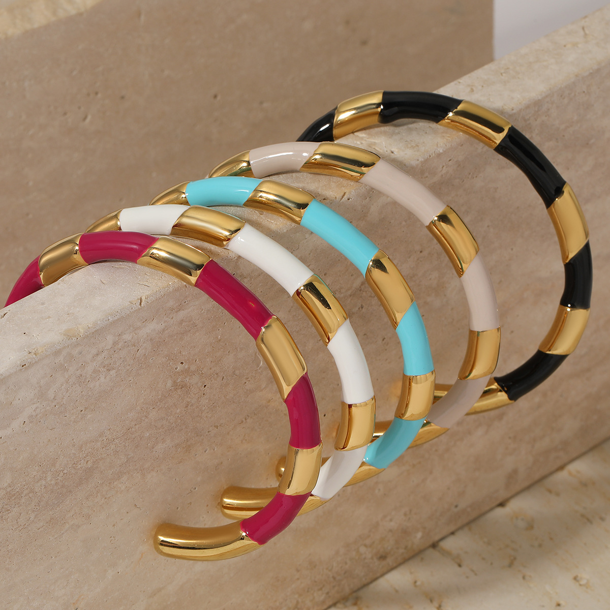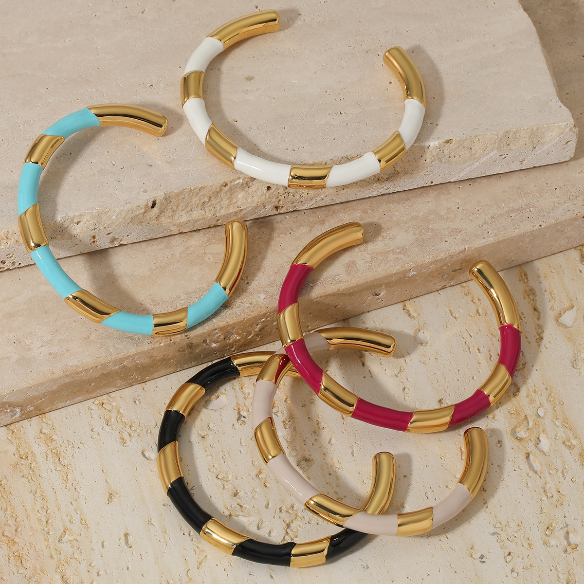Bracelet en acier inoxydable, Acier inoxydable 304, Placage de couleur d'or, bijoux de mode & pour femme & émail, plus de couleurs à choisir, Vendu par PC