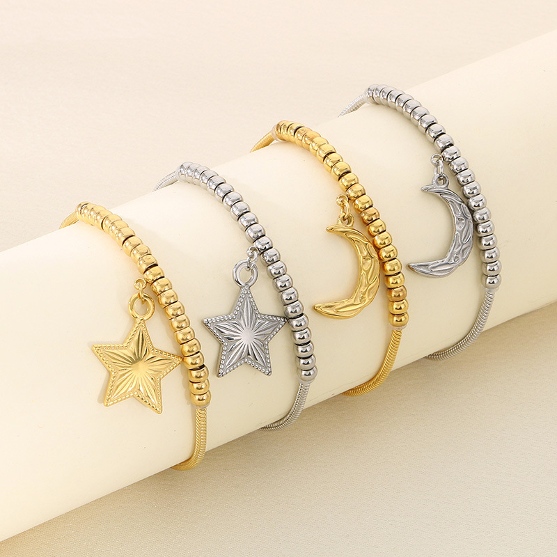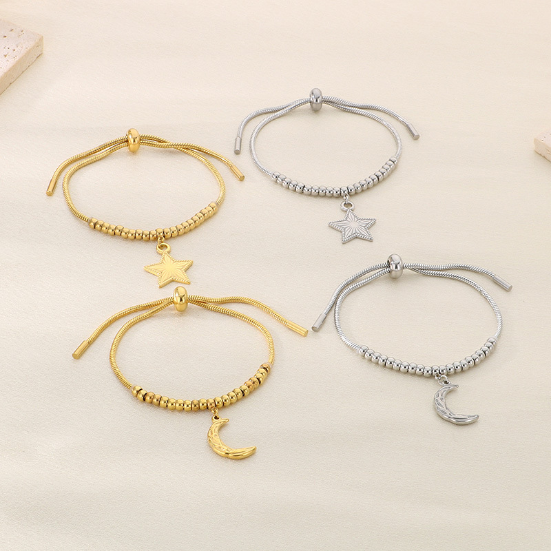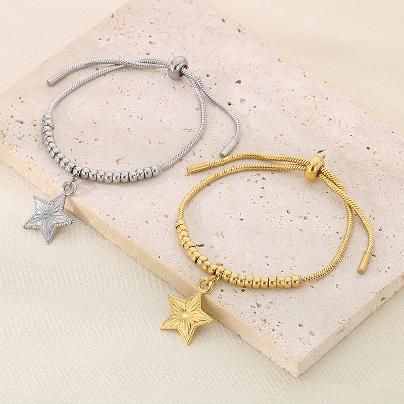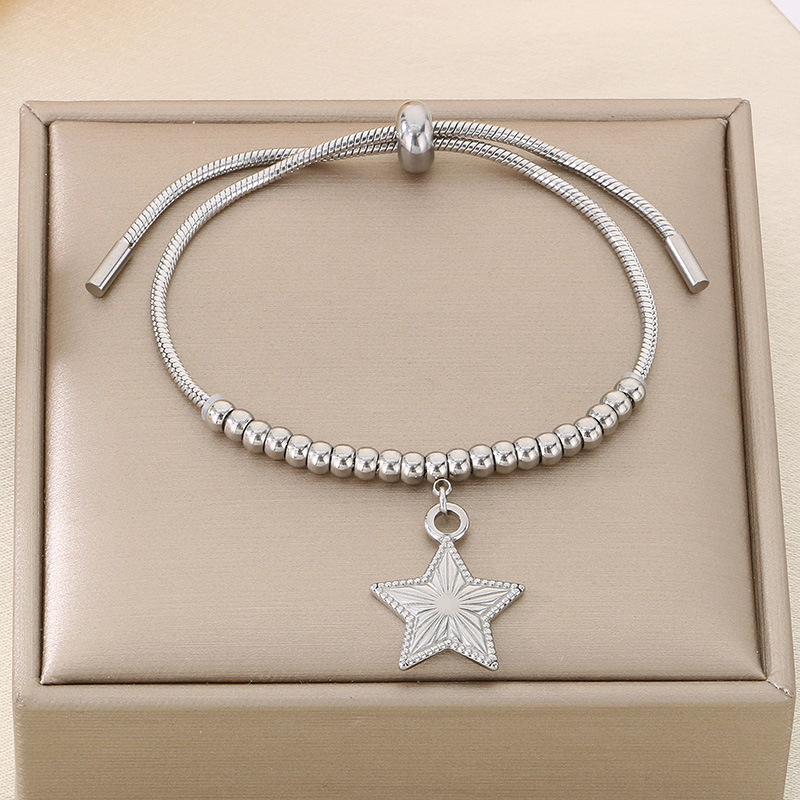 Bracelet en acier inoxydable, étoile, bracelet à breloques & chaîne ovale, couleur originale Environ 8 pouce, Vendu par brin