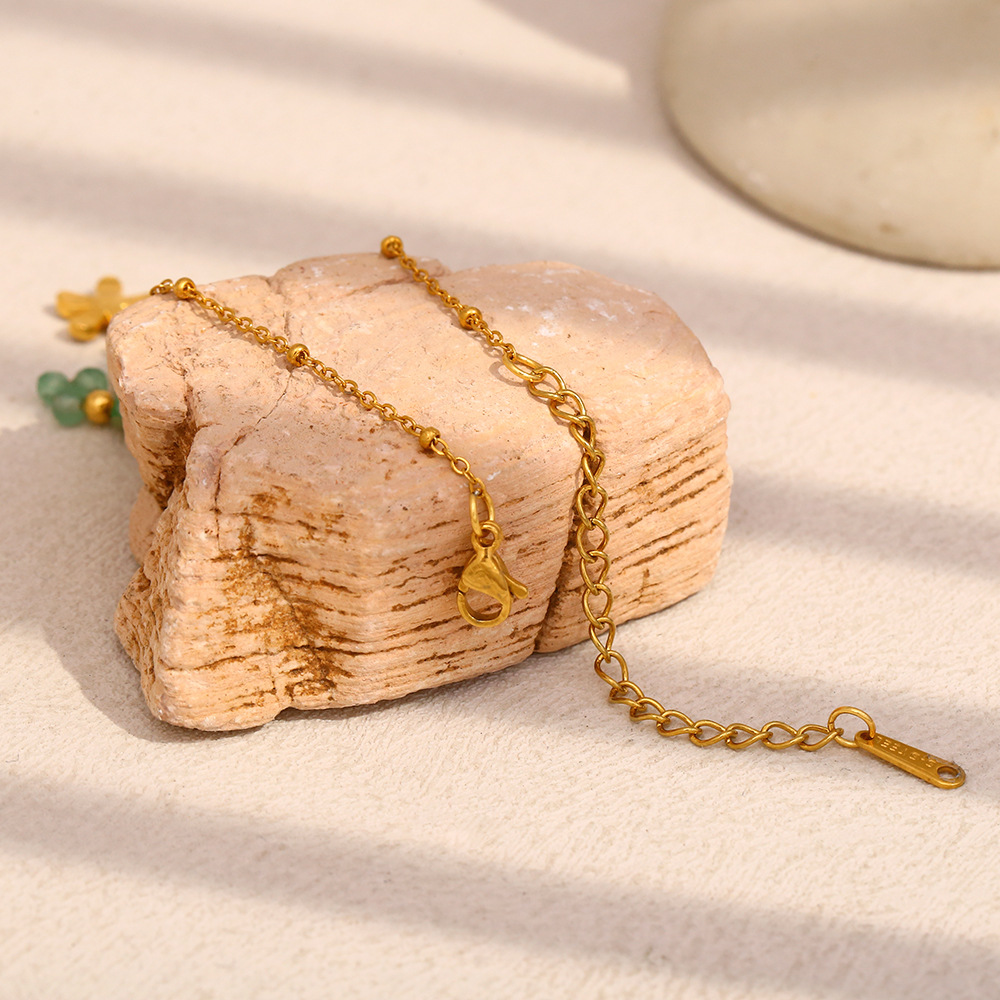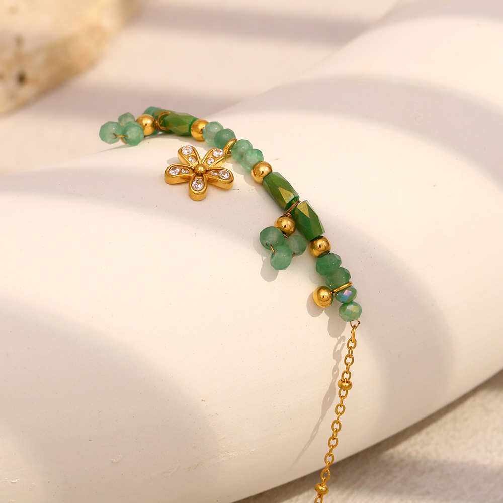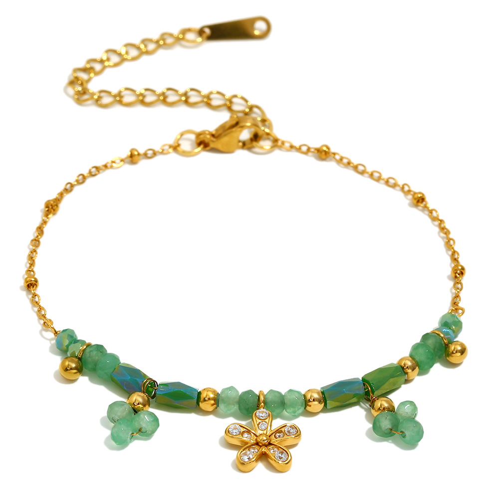 Bracelet en acier inoxydable, fleur, bracelet à breloques & chaîne ovale, couleur originale  Environ 9 pouce, Vendu par brin