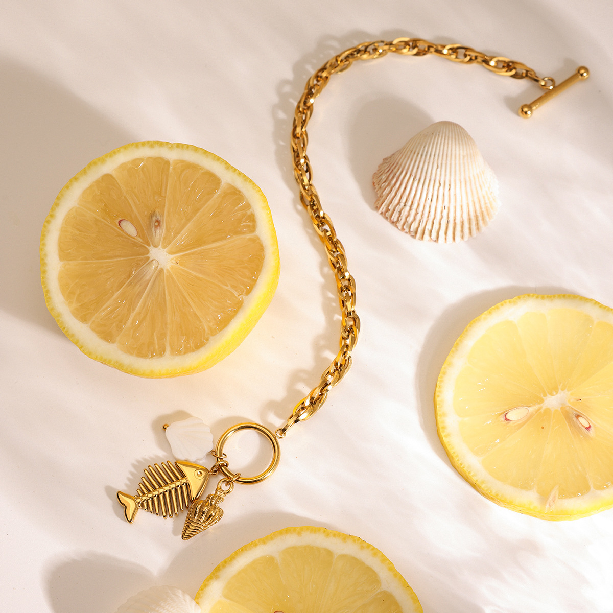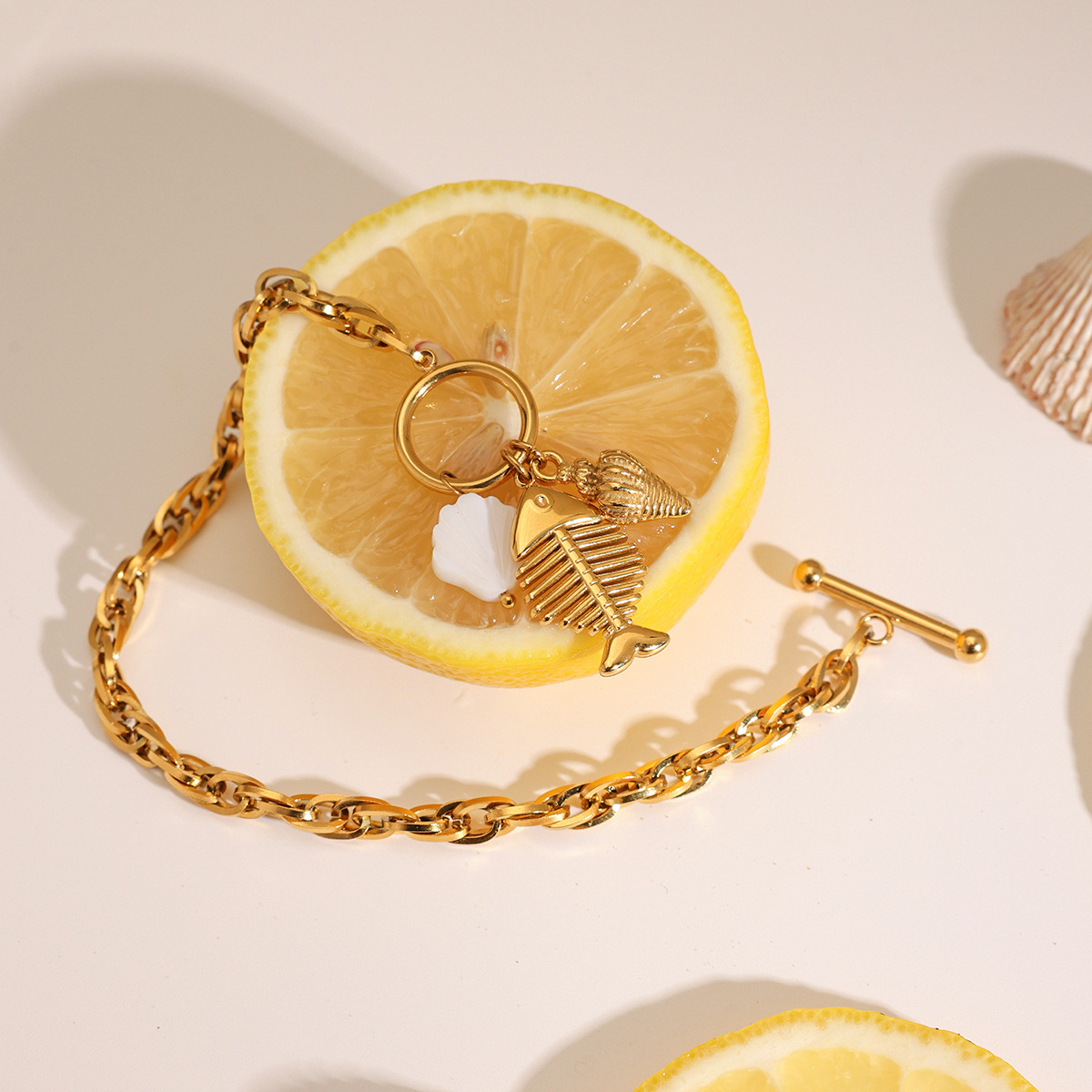 Bracelet en acier inoxydable, Acier inoxydable 304, avec coquille, Plaqué or 18K, bijoux de mode & pour femme, Longueur:8.26 pouce, Vendu par PC