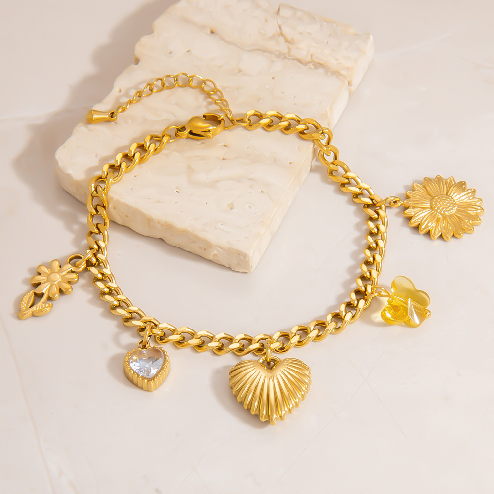 Bracelet en acier inoxydable, fleur, bracelet à breloques & chaîne ovale, couleur originale  Environ 9 pouce, Vendu par brin