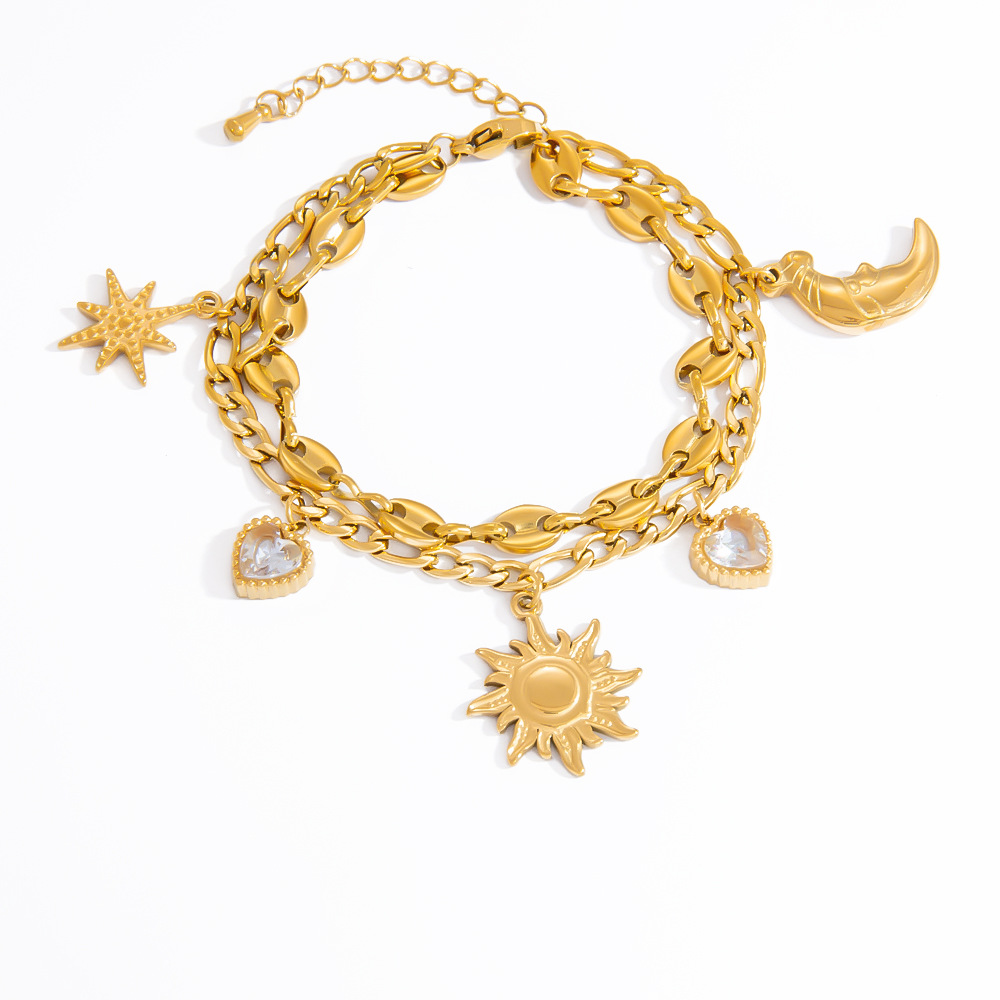 Bracelet en acier inoxydable, étoile, bracelet à breloques & chaîne ovale, couleur originale Environ 8 pouce, Vendu par brin