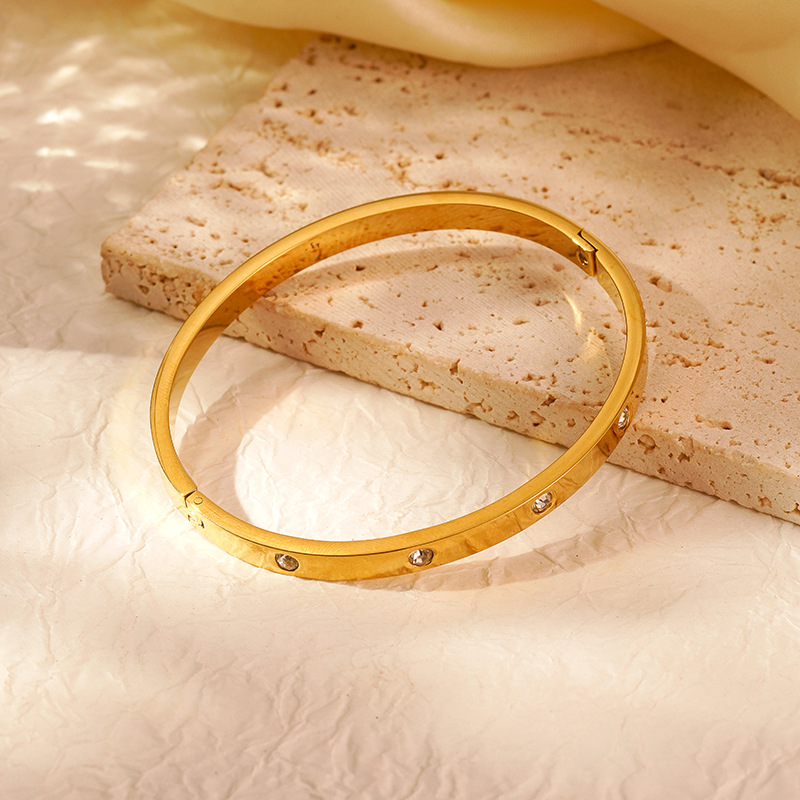 Bracelet en acier inoxydable, Acier inoxydable 304, Rond, Placage, pour femme & avec strass, plus de couleurs à choisir, Vendu par PC