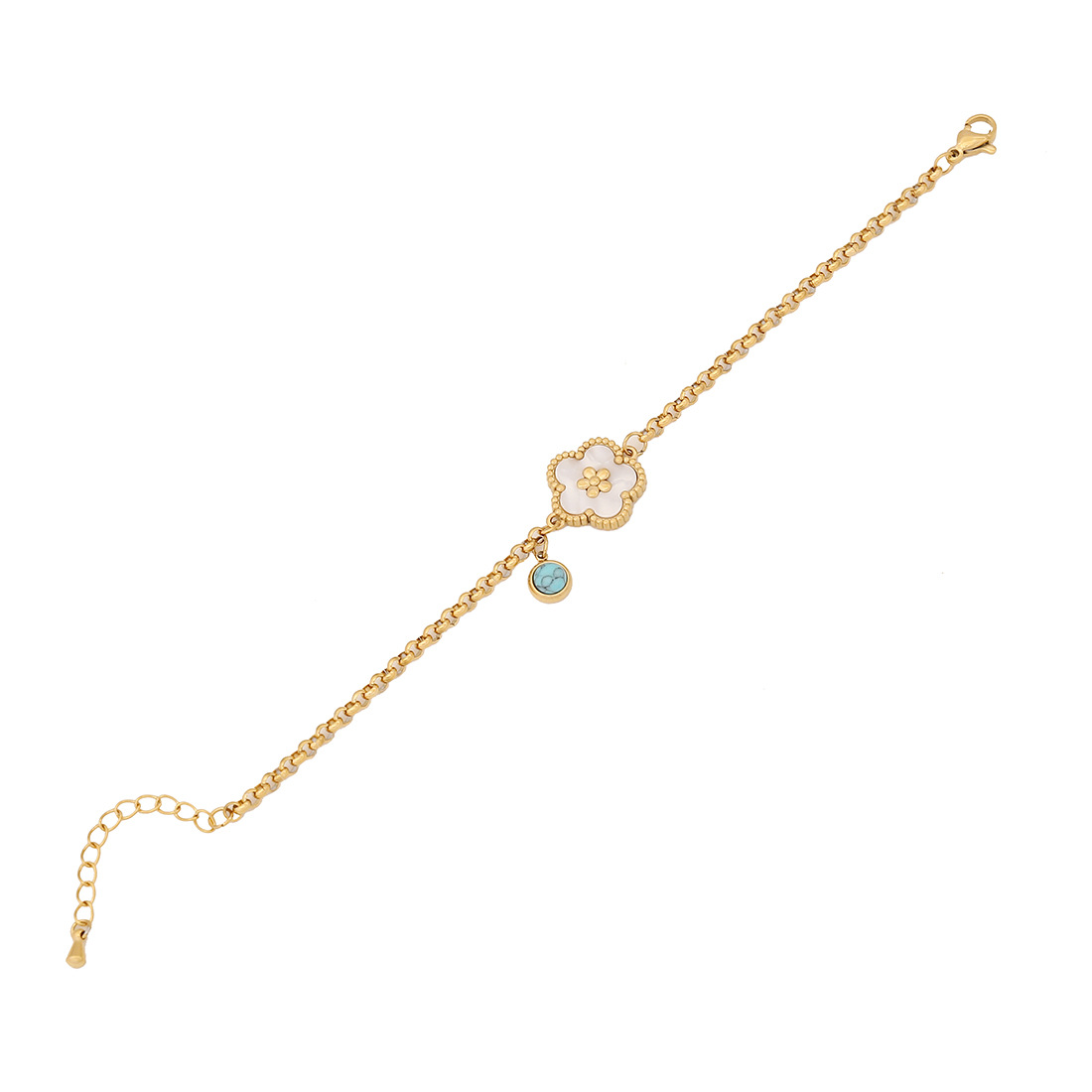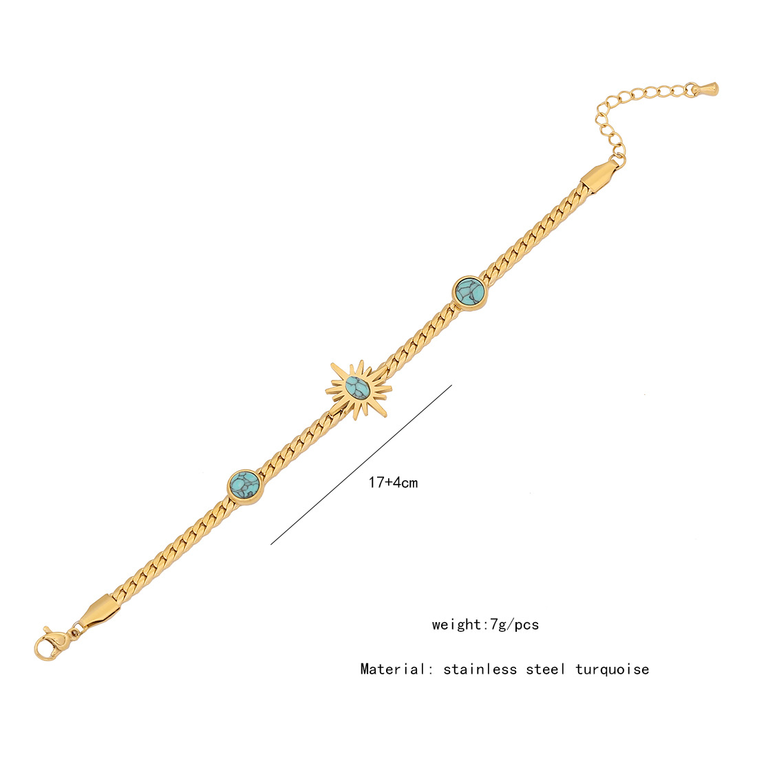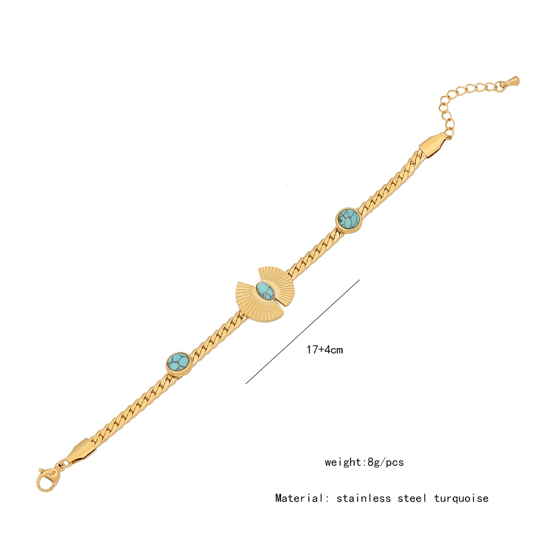 Bracelet en acier inoxydable, Acier inoxydable 304, avec turquoise synthétique, avec 4cm chaînes de rallonge, Placage, bijoux de mode & styles différents pour le choix & pour femme, doré, Longueur:17 cm, Vendu par PC