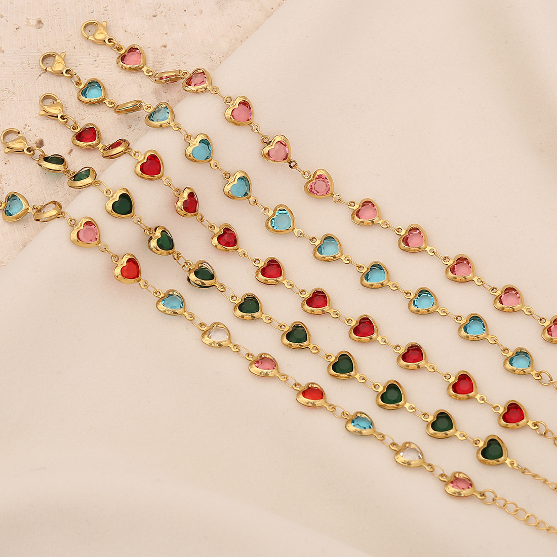 Bracelet en acier inoxydable, Acier inoxydable 304, avec Perceuse à eau en verre, Placage de couleur d'or, bijoux de mode & pour femme, plus de couleurs à choisir, Vendu par PC