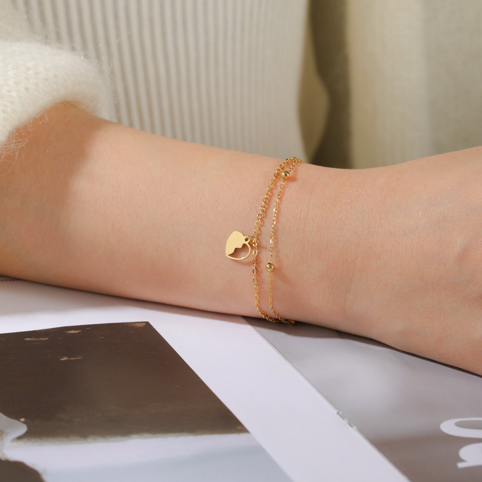 Bracelet en acier inoxydable, coeur, bracelet à breloques & chaîne ovale, couleur originale  4mm Environ 8 pouce, Vendu par brin