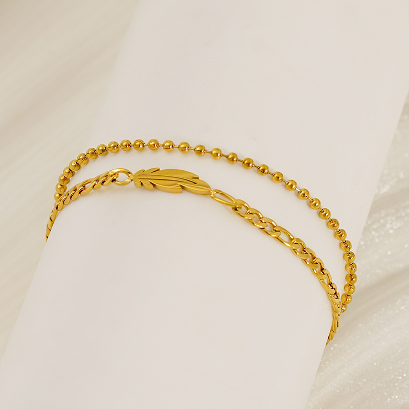 Bracelet en acier inoxydable, Acier inoxydable 304, Plaqué or 18K, Double couche & bijoux de mode & pour femme, Vendu par PC
