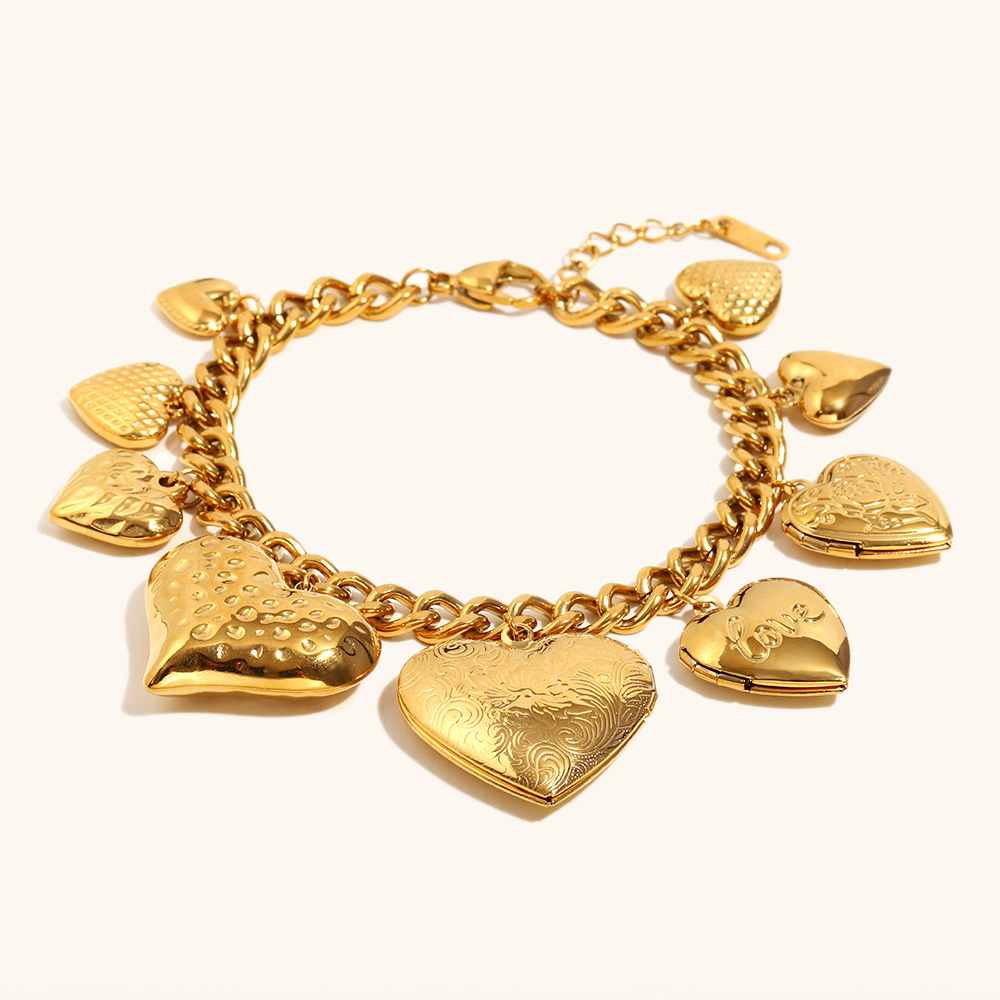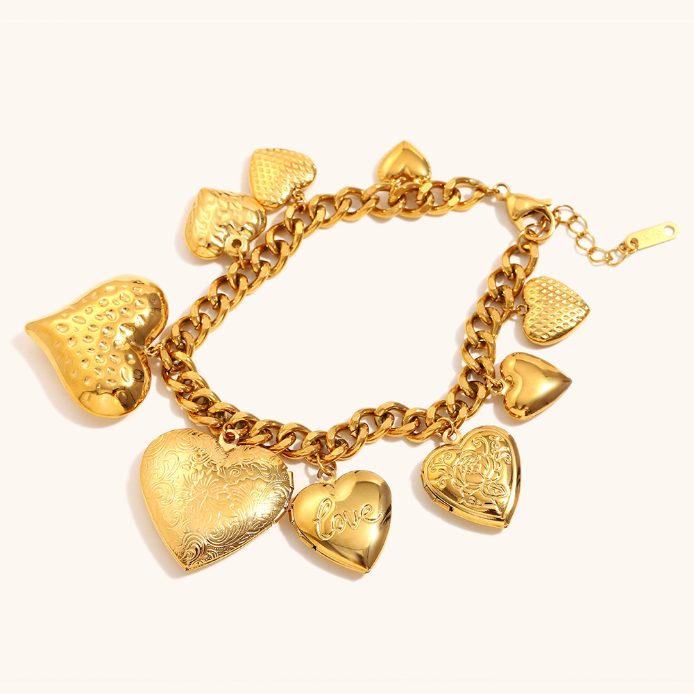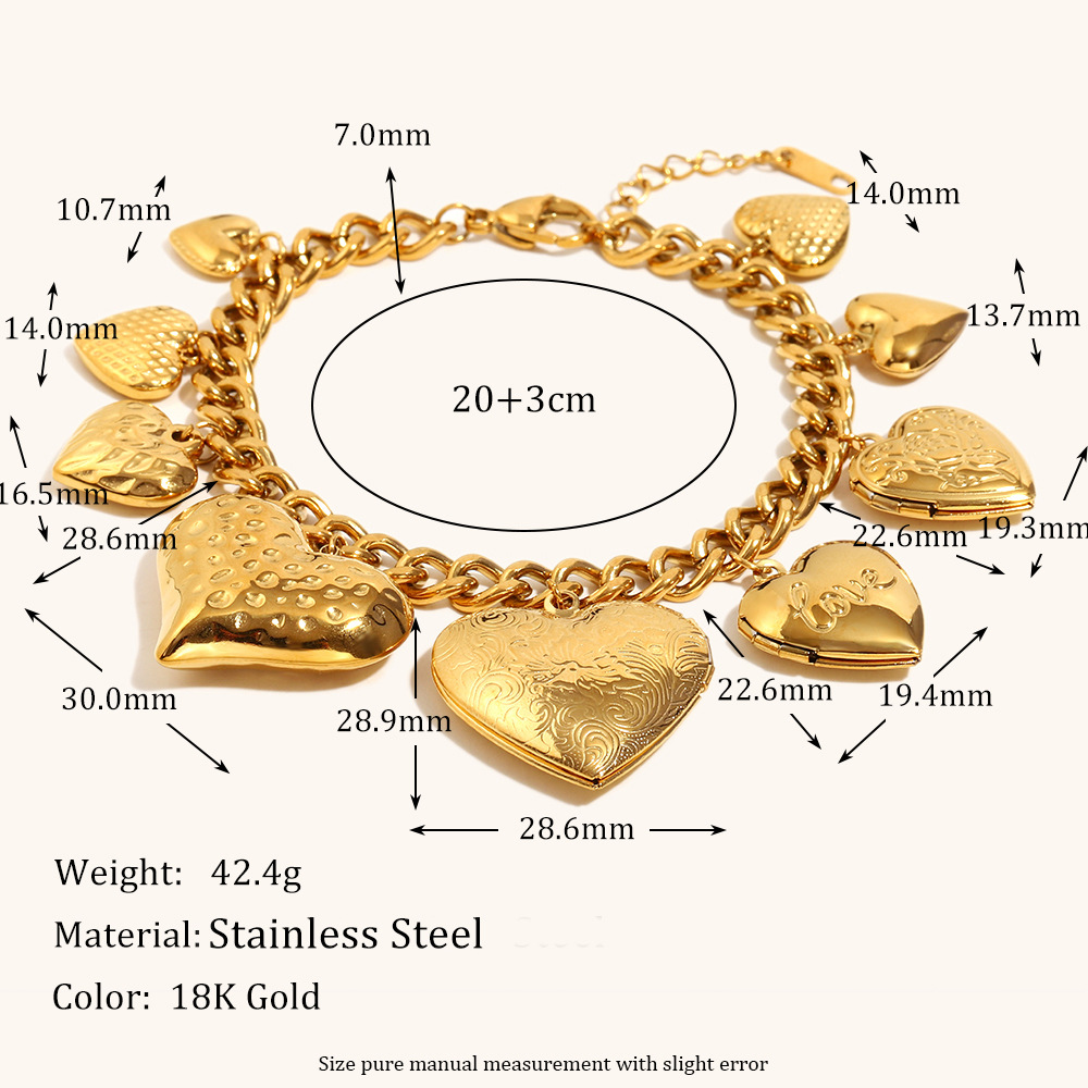Bracelet en acier inoxydable, coeur, bracelet à breloques & chaîne ovale, couleur originale  4mm Environ 8 pouce, Vendu par brin