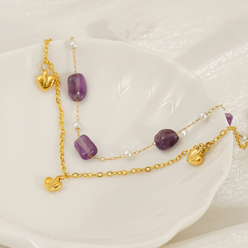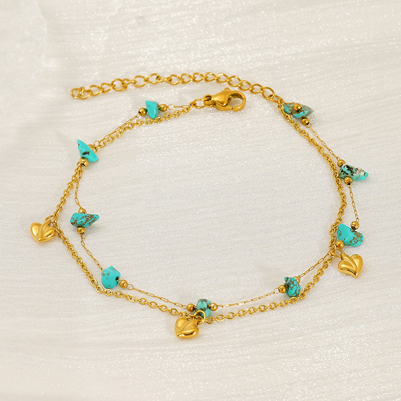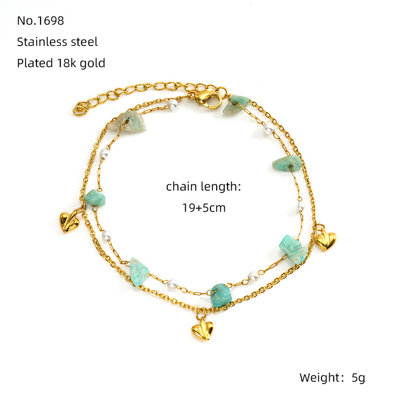 Bracelet en acier inoxydable, Acier inoxydable 304, avec Pierre naturelle, Plaqué or 18K, Double couche & différents matériaux pour le choix & pour femme, Vendu par PC