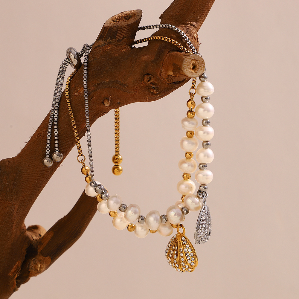 Bracelet en acier inoxydable, Acier inoxydable 304, avec perle de plastique, Placage, bijoux de mode & pour femme & avec strass, plus de couleurs à choisir, Vendu par PC