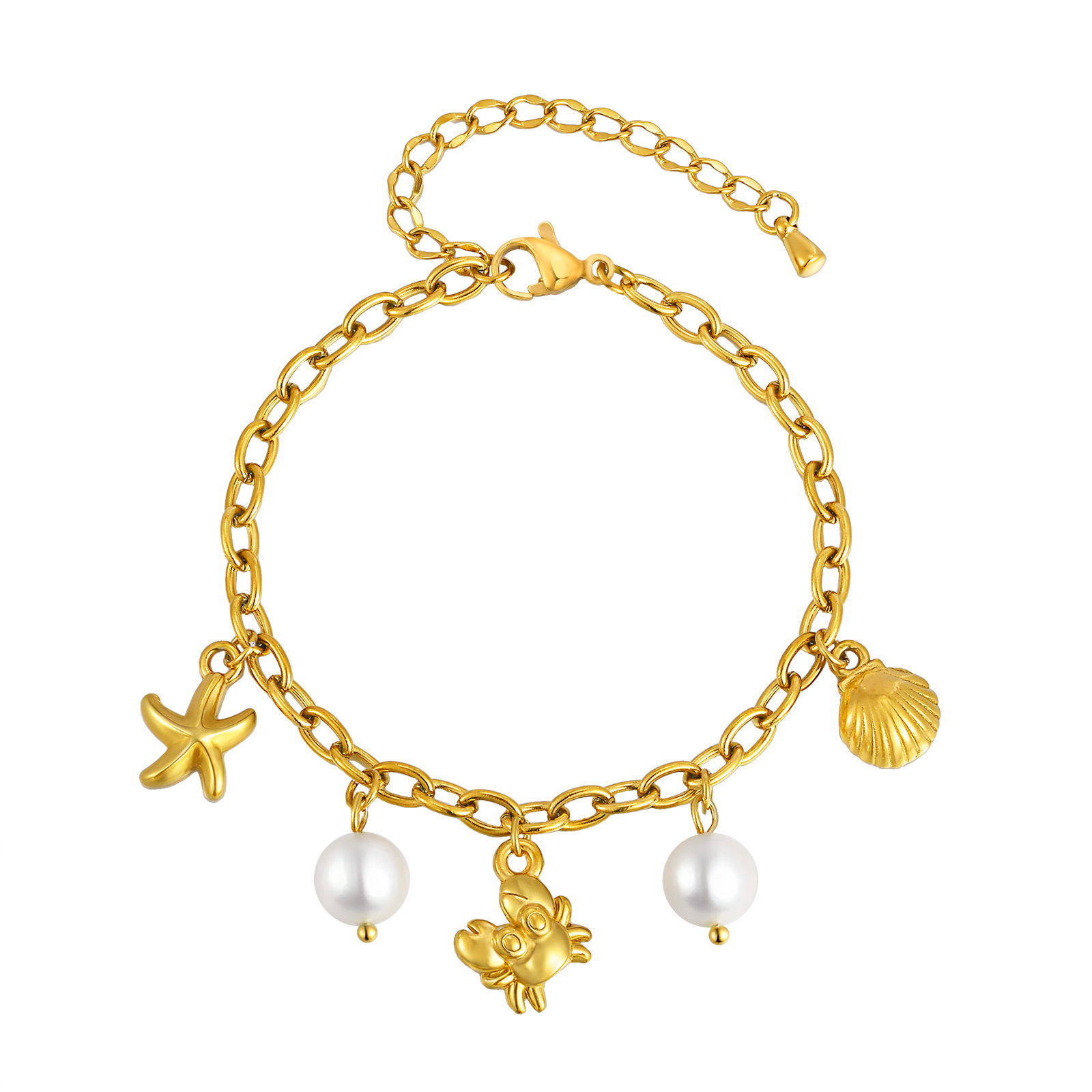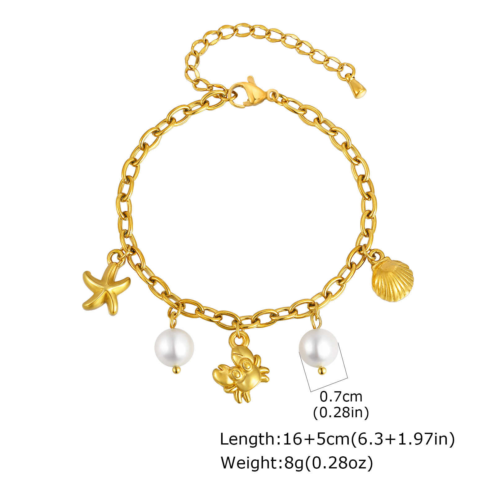 Bracelet en acier inoxydable, avec 1lnch chaînes de rallonge, bracelet à breloques & chaîne ovale, couleur originale   Environ 7.5 pouce, Vendu par brin