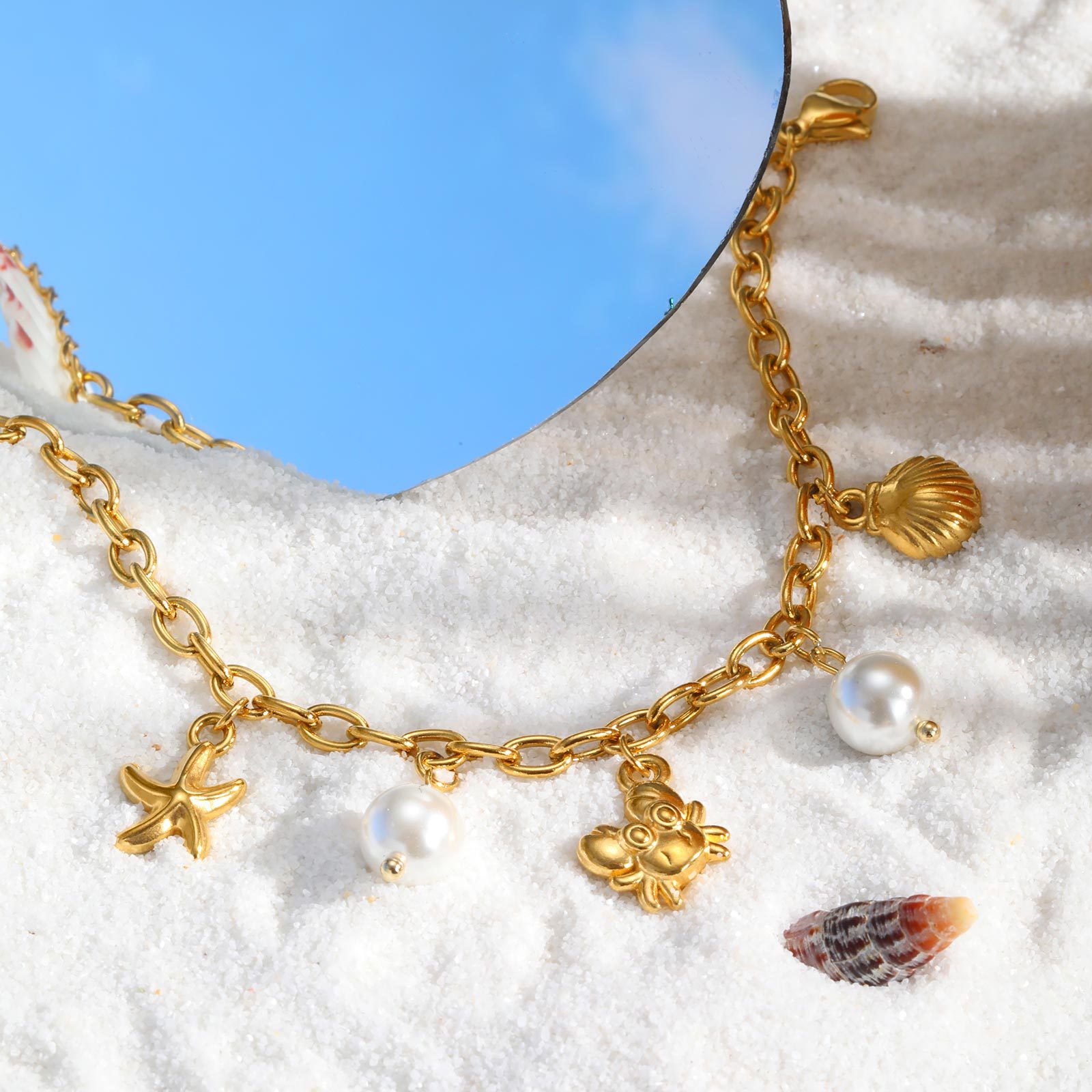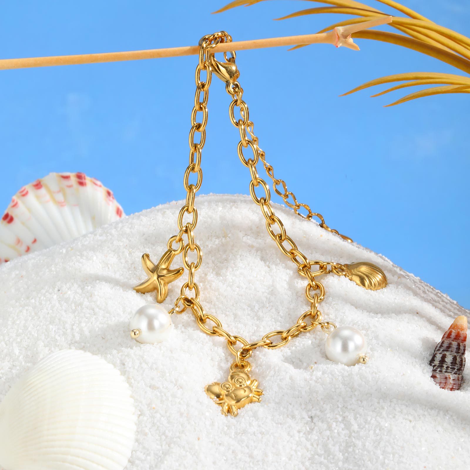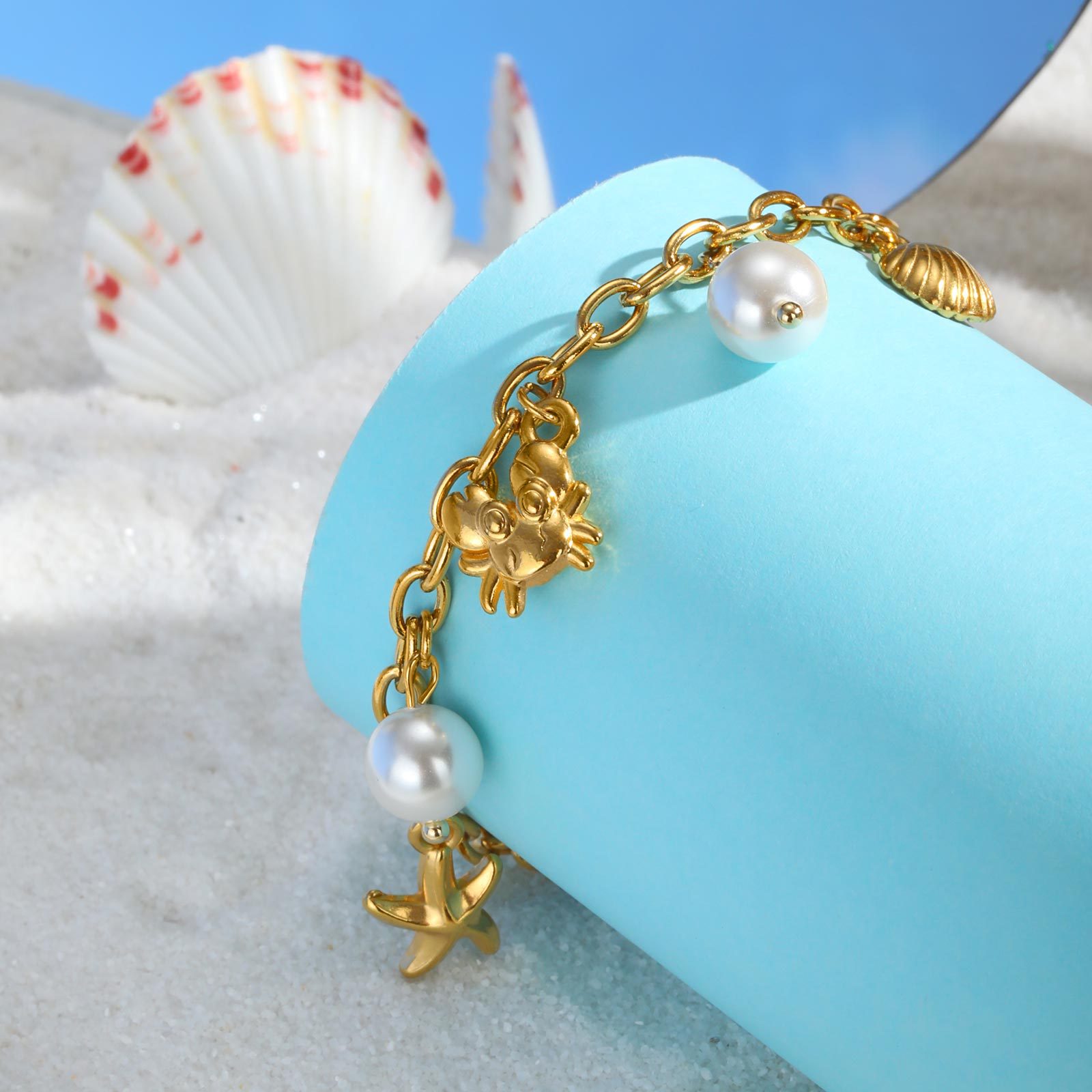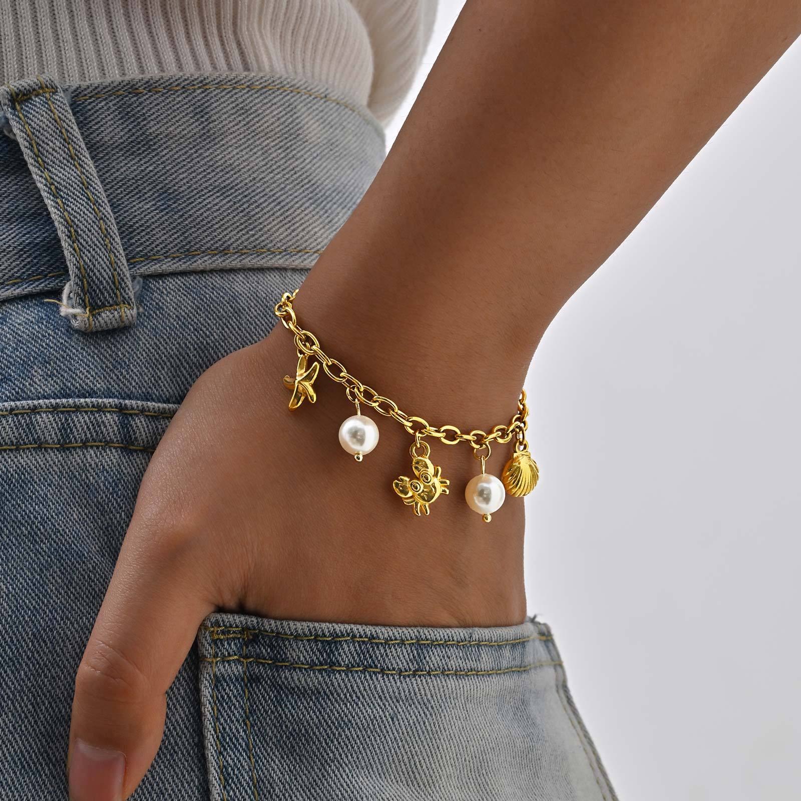 Bracelet en acier inoxydable, Acier inoxydable 304, avec perle de verre, Plaqué or 18K, bijoux de mode & pour femme, Vendu par PC