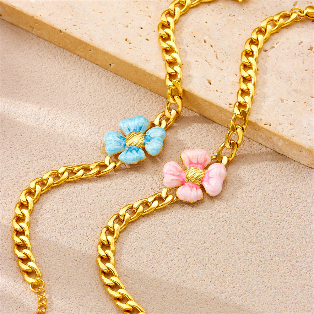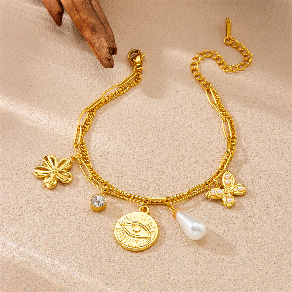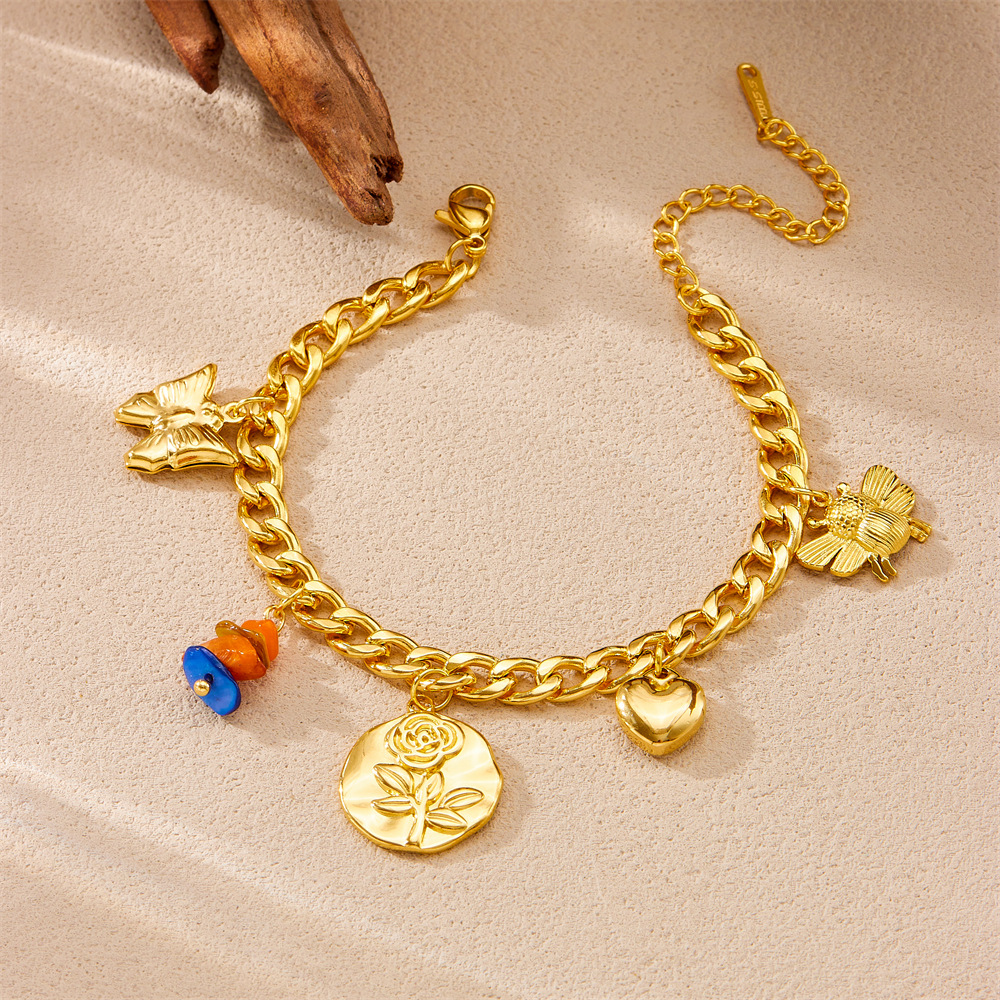 Bracelet en acier inoxydable, fleur, bracelet à breloques & chaîne ovale, couleur originale  Environ 9 pouce, Vendu par brin