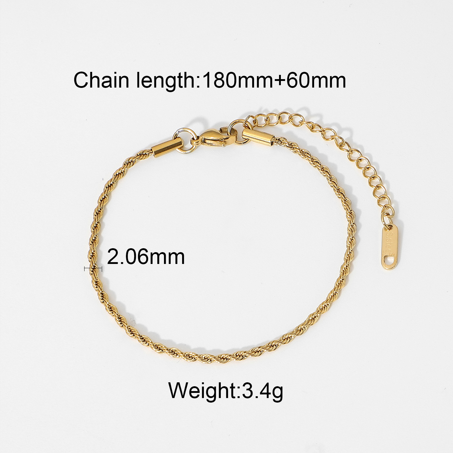 Bracelet en acier inoxydable, avec 1.5lnch chaînes de rallonge, animal, bracelet à breloques & chaîne ovale, couleur originale   Environ 7.3 pouce, Vendu par brin