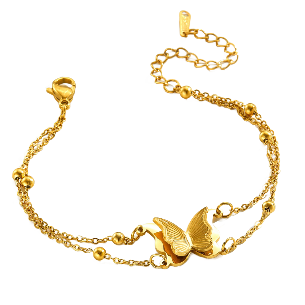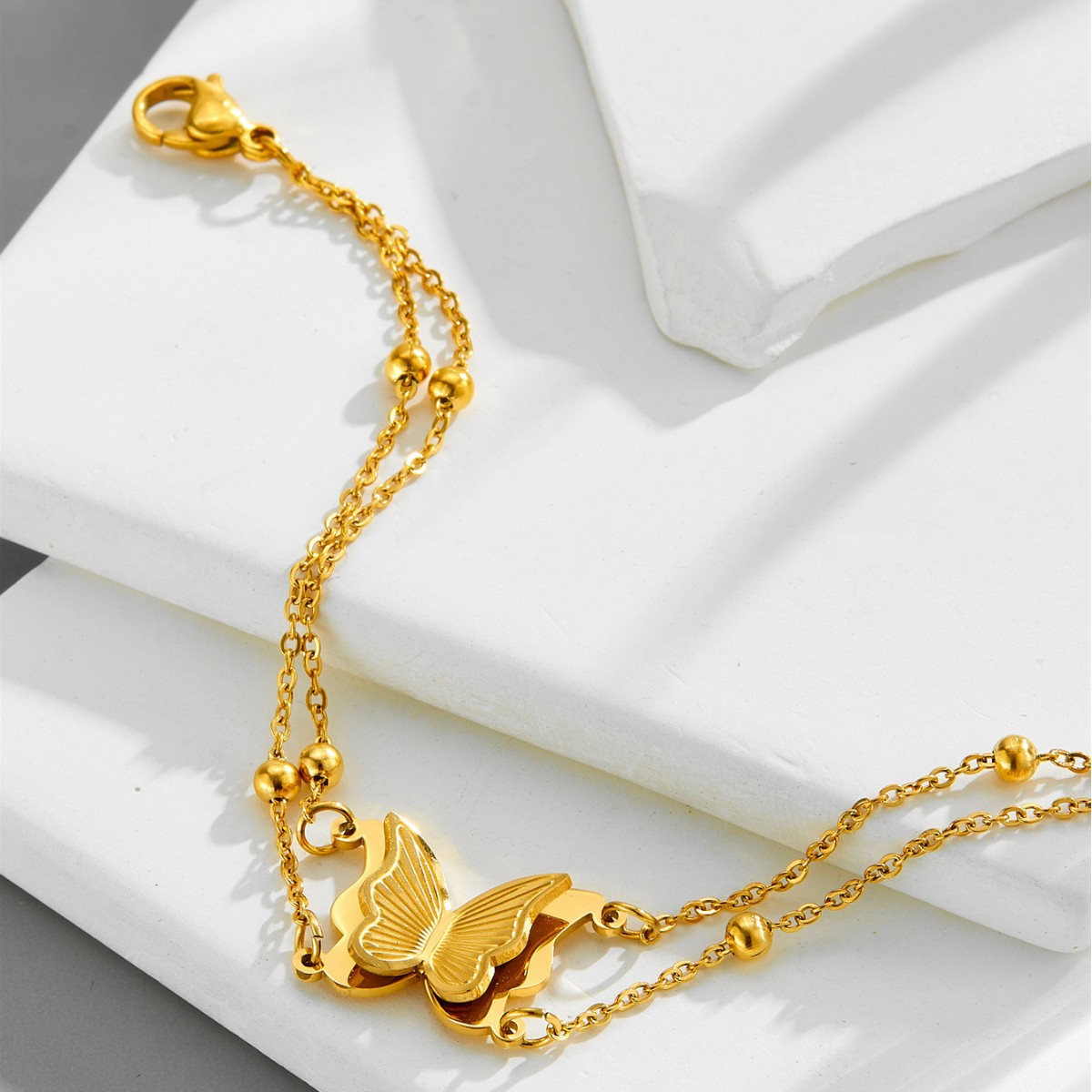 Bracelet en acier inoxydable, Acier inoxydable 304, Placage, Double couche & bijoux de mode & pour femme, doré, Longueur:Environ 16 cm, Vendu par PC