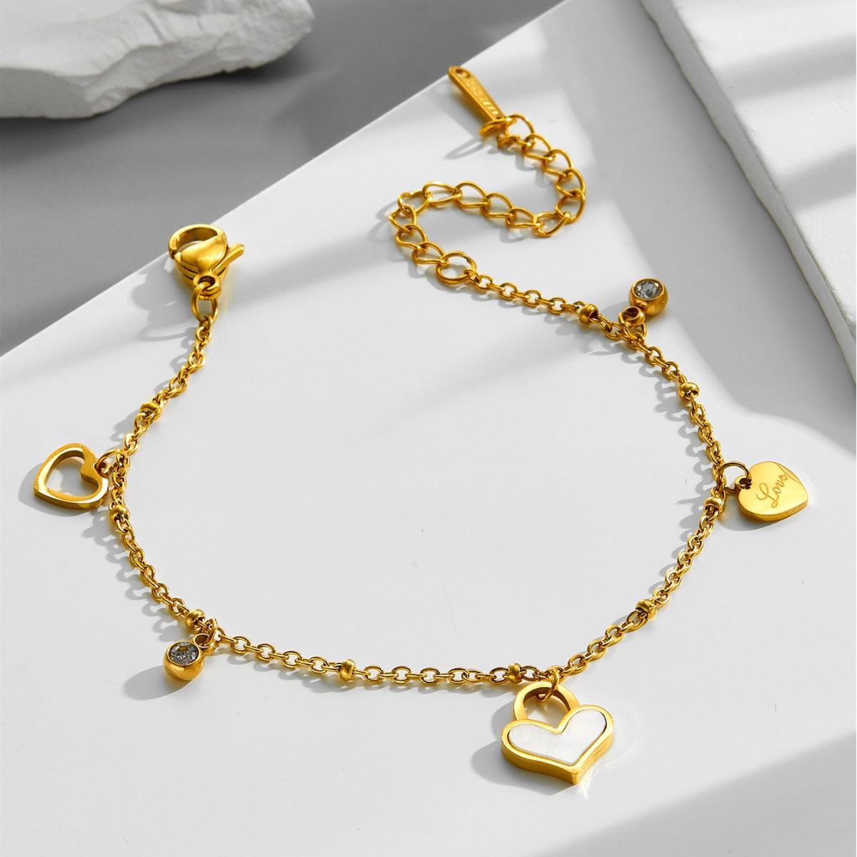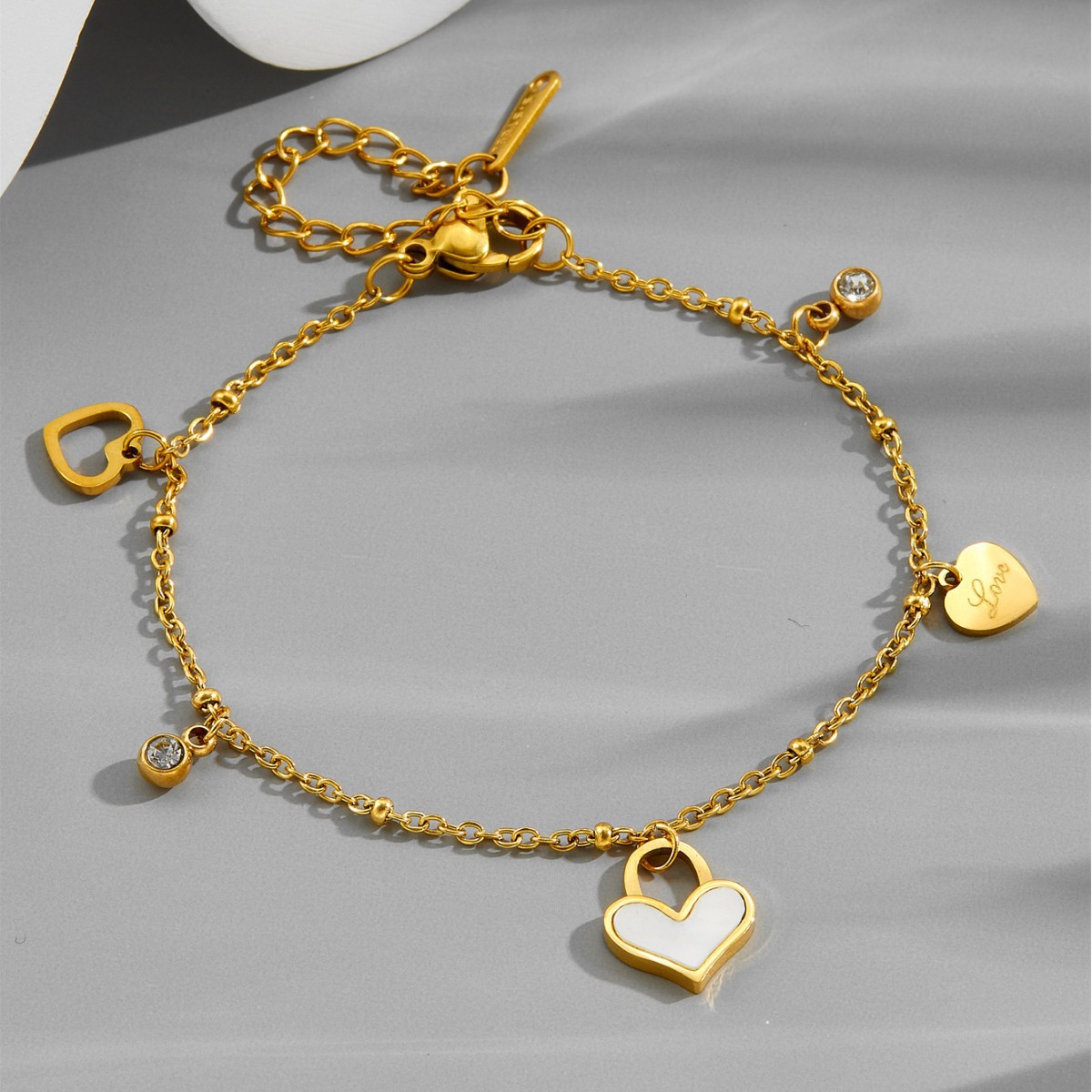 Bracelet en acier inoxydable, Acier inoxydable 304, avec coquille blanche, Plaqué or 18K, bijoux de mode & pour femme & avec strass, Longueur:Environ 16 cm, Vendu par PC
