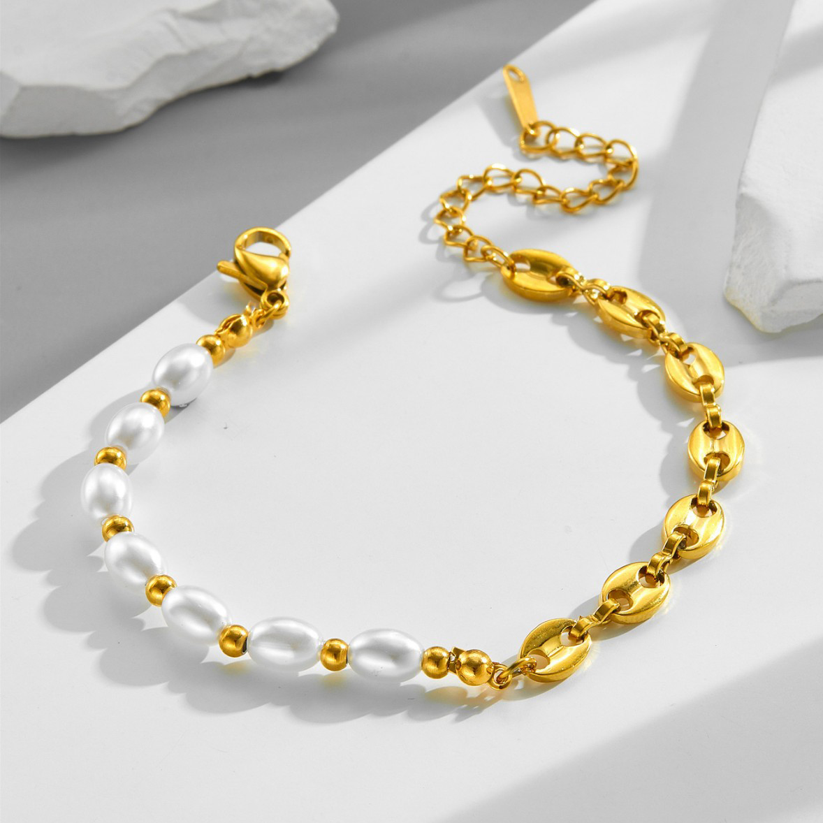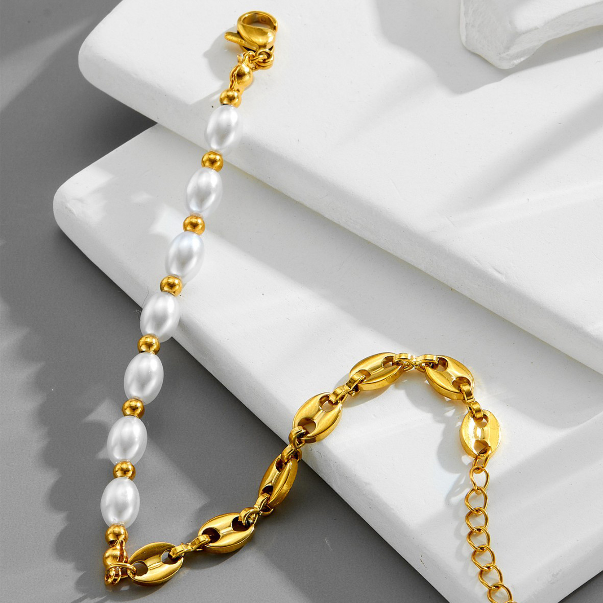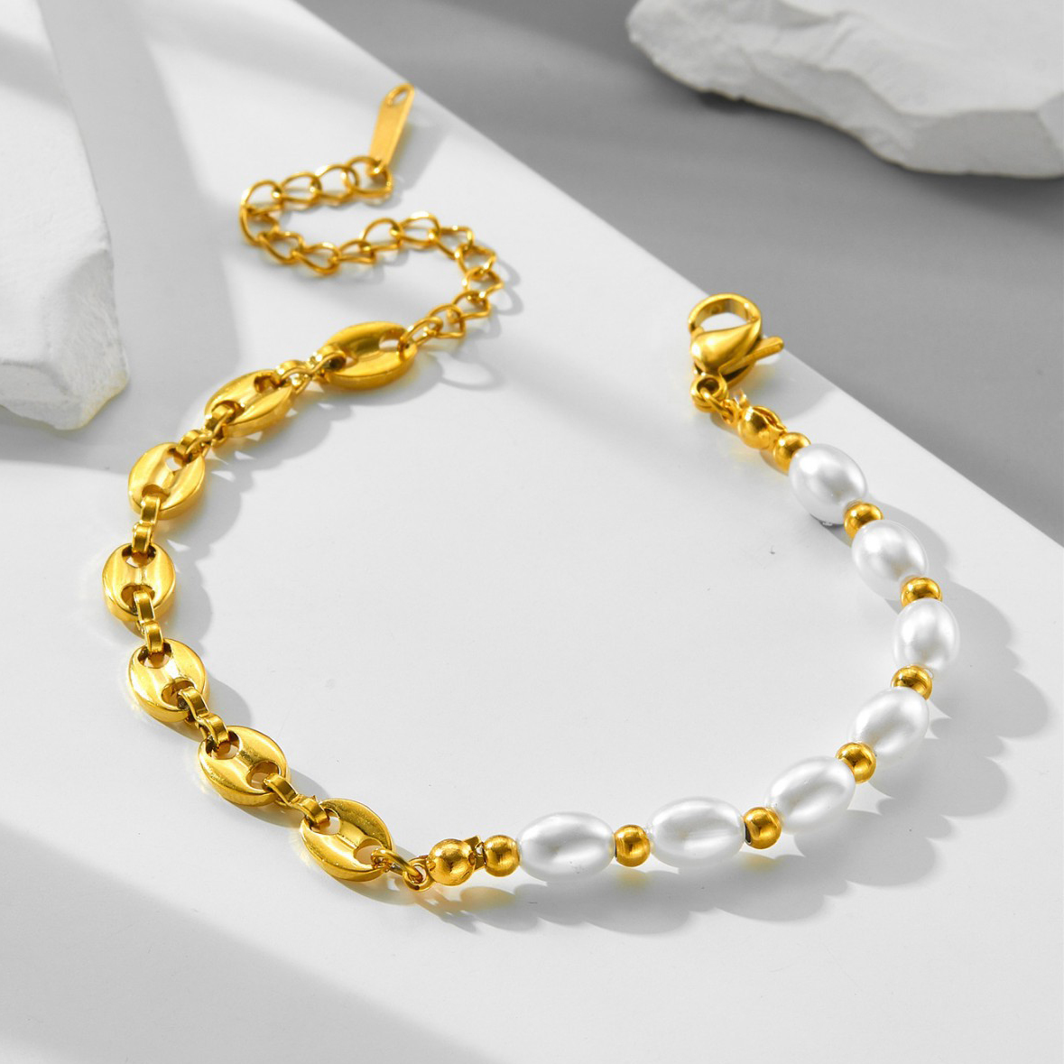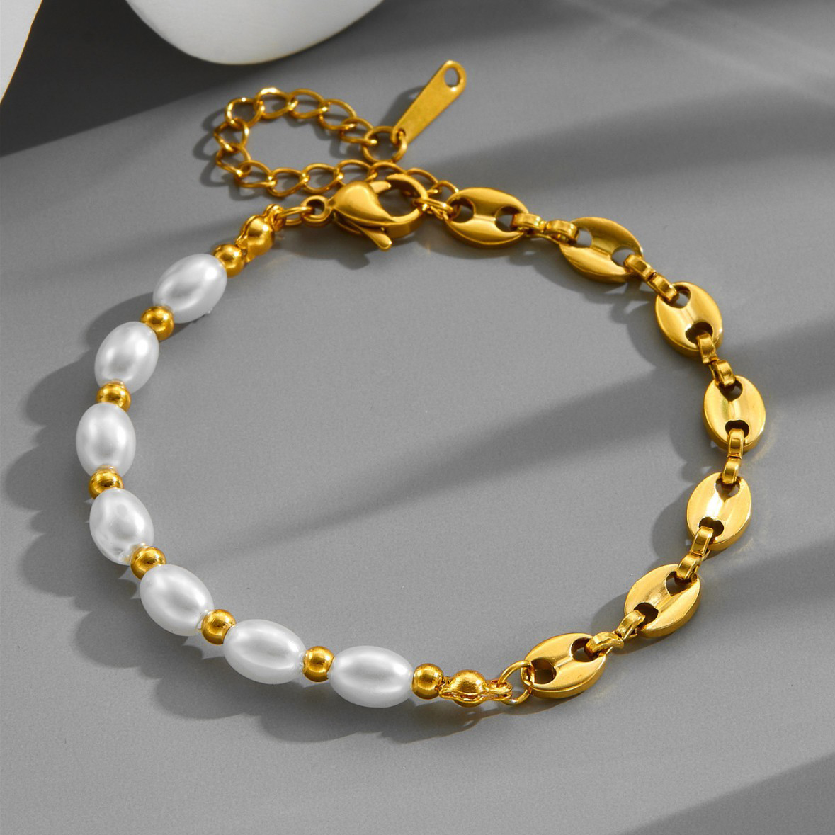 Bracelet en acier inoxydable, Acier inoxydable 304, avec perle de plastique, Placage, bijoux de mode & pour femme, doré, Longueur:Environ 16 cm, Vendu par PC