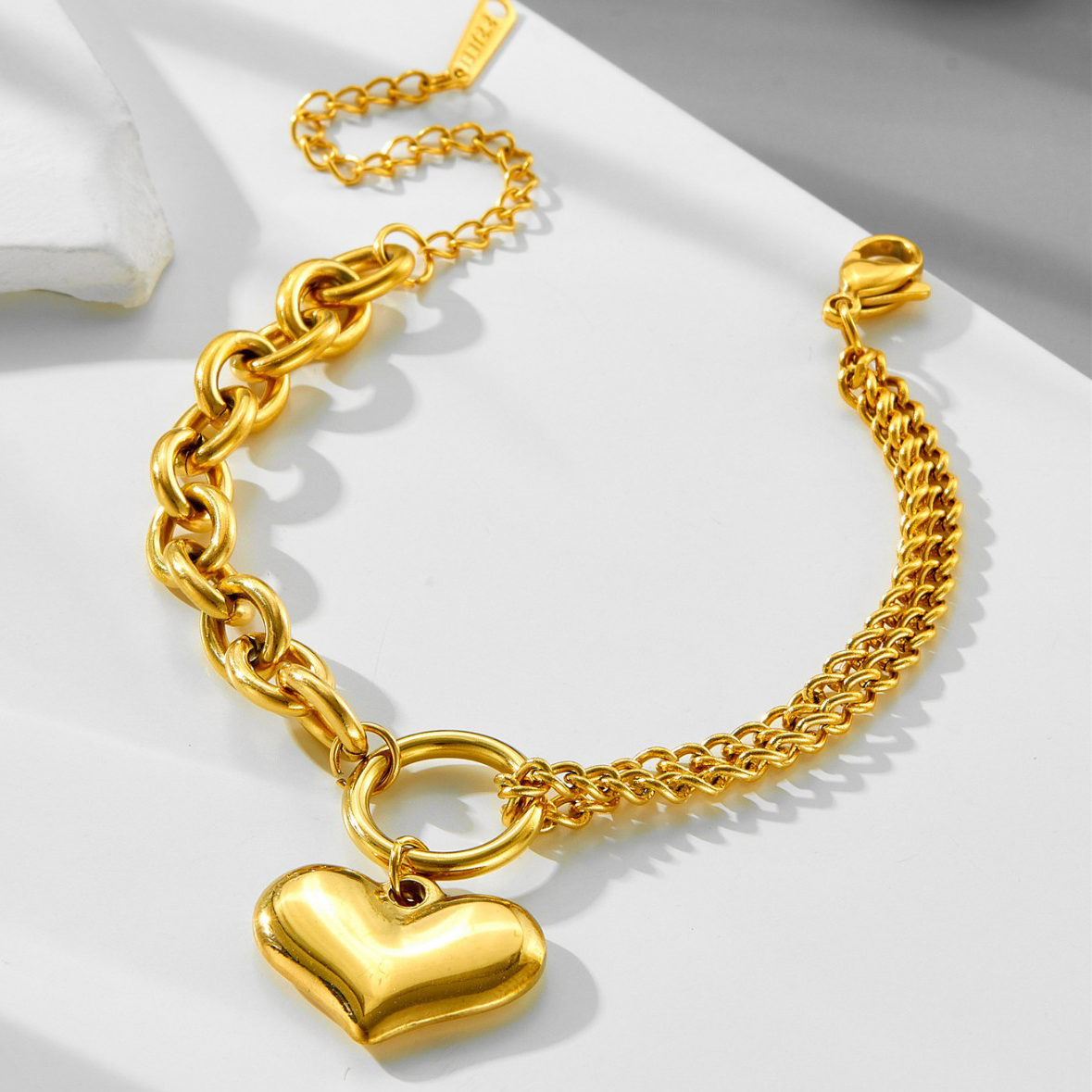 Bracelet en acier inoxydable, coeur, bracelet à breloques & chaîne ovale, couleur originale  4mm Environ 8 pouce, Vendu par brin