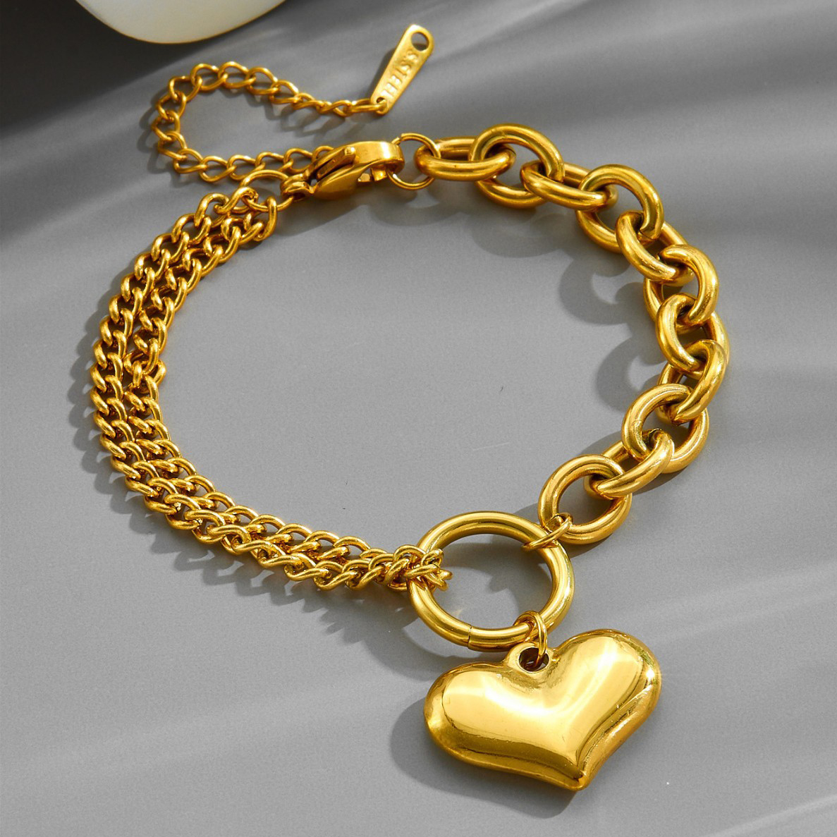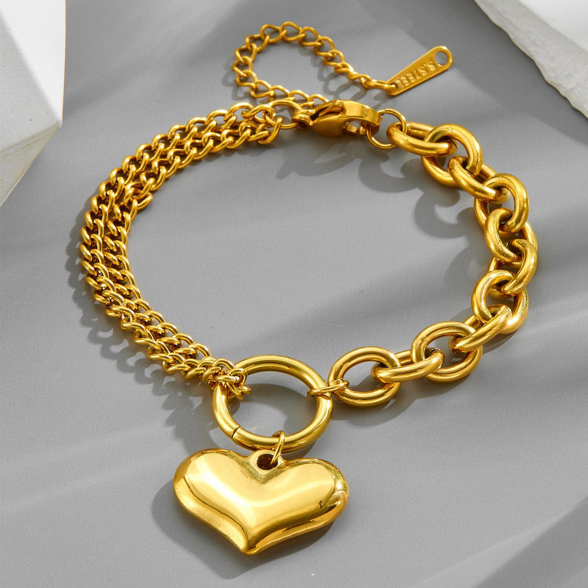 Bracelet en acier inoxydable, Acier inoxydable 304, Placage, Double couche & bijoux de mode & pour femme, doré, Longueur:Environ 16 cm, Vendu par PC