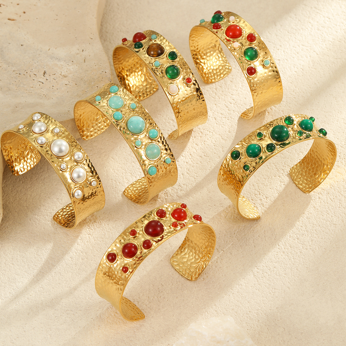 Bracelet en acier inoxydable, Acier inoxydable 304, avec pierre gemme, Placage, bijoux de mode, doré, Vendu par PC