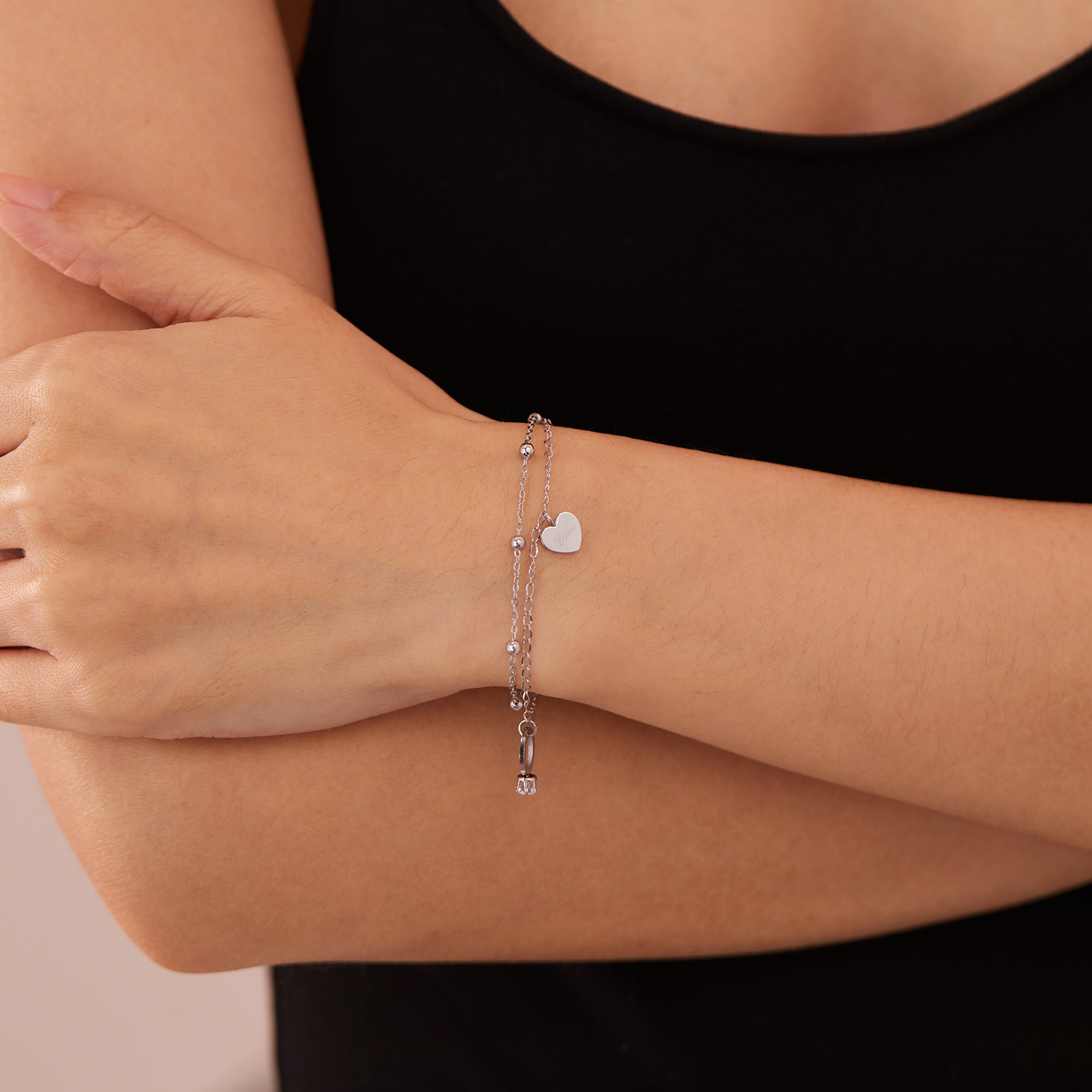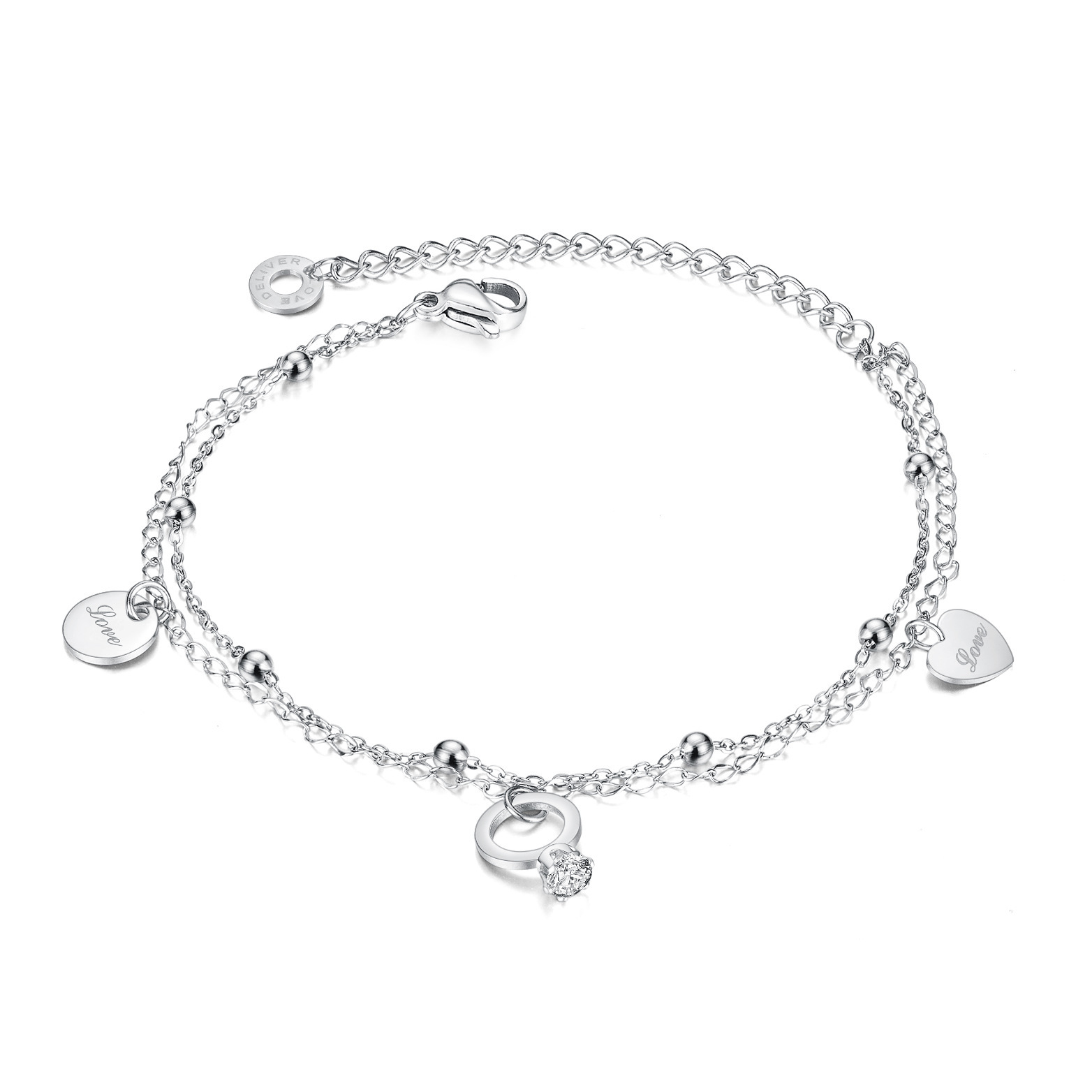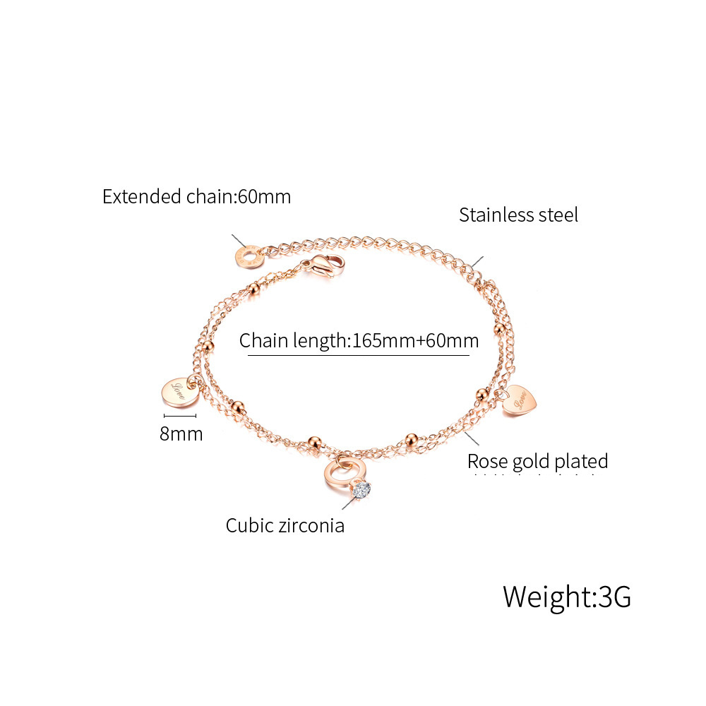 Bracelet en acier inoxydable, Acier inoxydable 304, avec zircon cubique, Placage, Double couche & bijoux de mode & pour femme, plus de couleurs à choisir, Vendu par PC