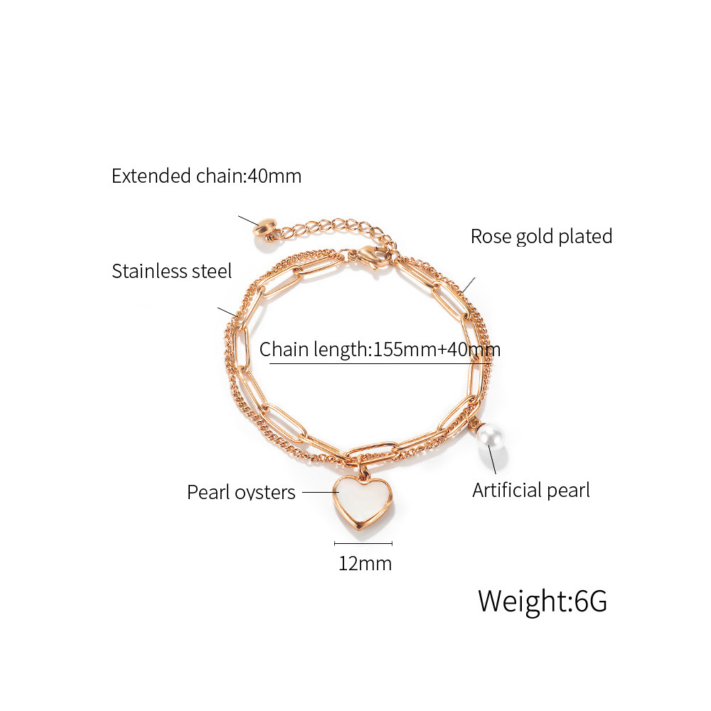 Bracelet en acier inoxydable, Acier inoxydable 304, avec Huître perlière & perle de plastique, Placage, Double couche & bijoux de mode & pour femme, plus de couleurs à choisir, Vendu par PC