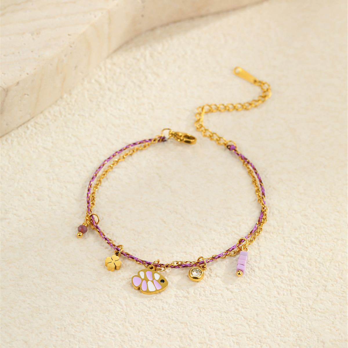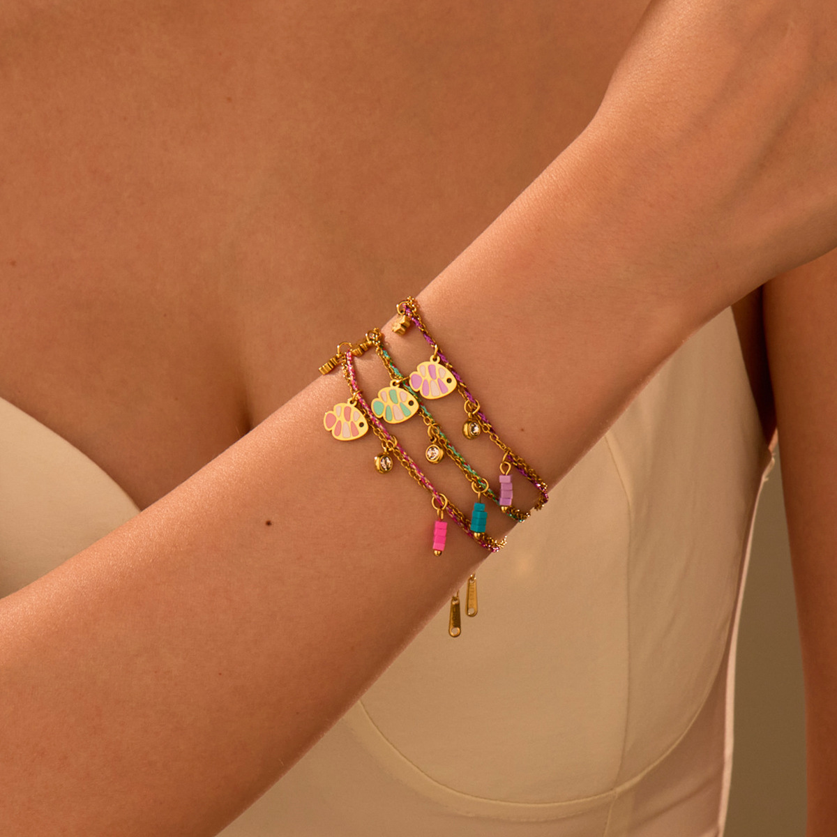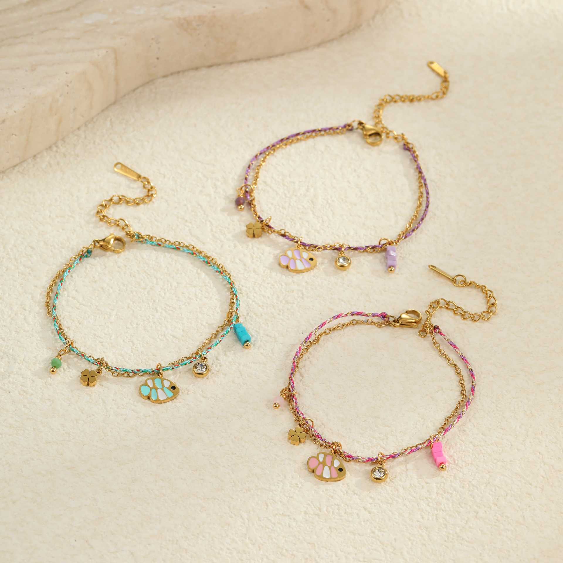 Bracelet en acier inoxydable, Acier inoxydable 304, avec Fibre chimique & résine, Plaqué or 18K, Double couche & pavé de micro zircon & pour femme & émail, plus de couleurs à choisir, Vendu par PC