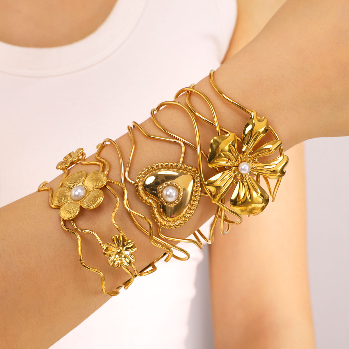Bracelet en acier inoxydable, coeur, couleur originale Diamètre inté Environ Environ 6.5 pouce, Vendu par PC