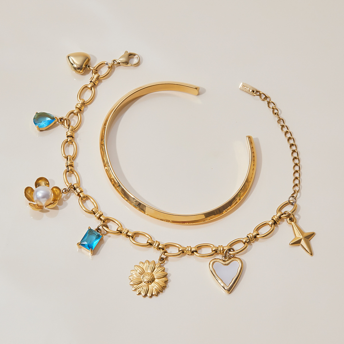 Bracelet en acier inoxydable, Acier inoxydable 304, avec zircon cubique & perle de verre, Placage, bijoux de mode & styles différents pour le choix & pour femme, doré, Vendu par PC