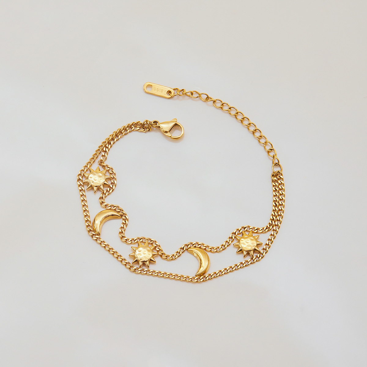 Bracelet en acier inoxydable, Acier inoxydable 304, Placage, Double couche & bijoux de mode & pour femme, doré, Vendu par PC