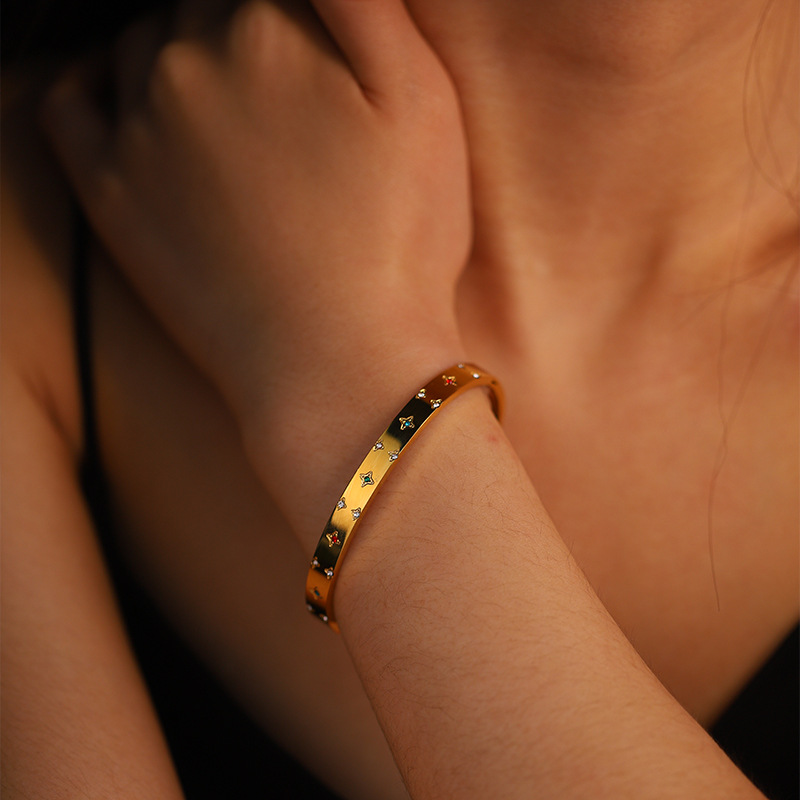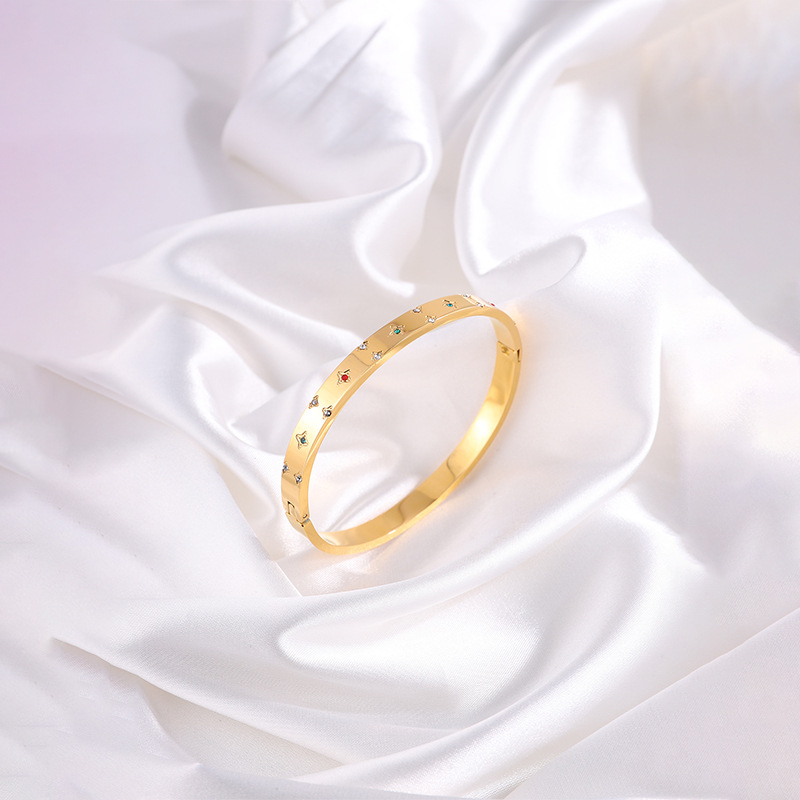 Bracelet en acier inoxydable, Acier inoxydable 304, Plaqué or 18K, bijoux de mode & pour femme & avec strass, Vendu par PC