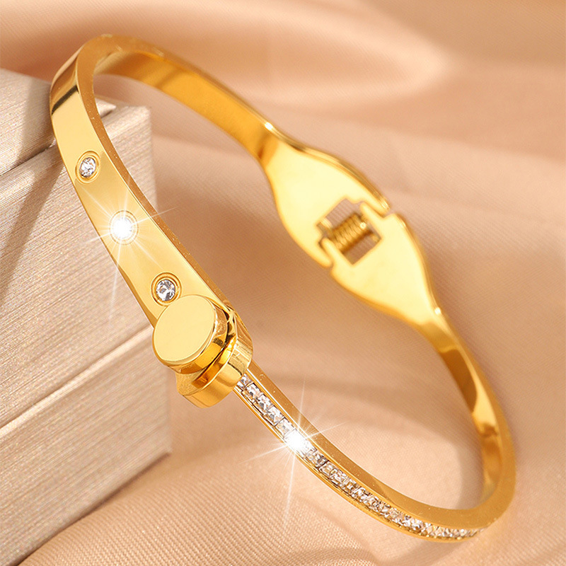 Bracelet en acier inoxydable, Acier inoxydable 304, Placage, bijoux de mode & pour femme & avec strass, doré, Vendu par PC