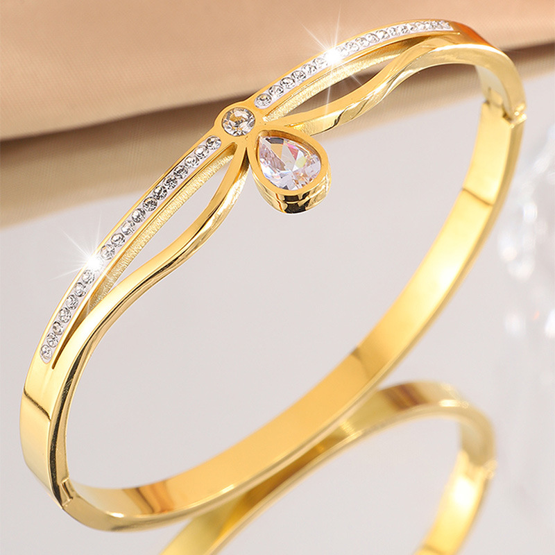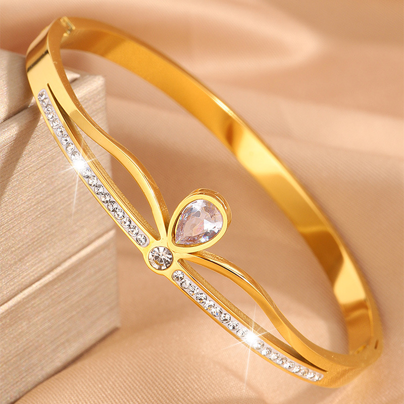 Bracelet en acier inoxydable, Acier inoxydable 304, Placage, pour femme & avec strass & creux, doré, Vendu par PC