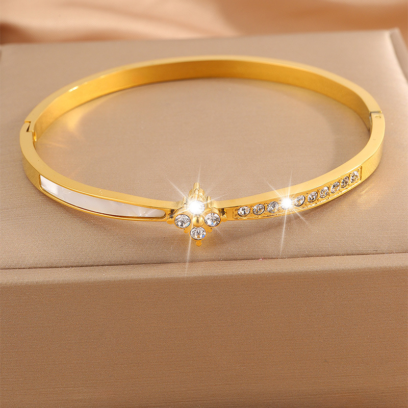 Bracelet en acier inoxydable, Acier inoxydable 304, avec coquille blanche, Placage, bijoux de mode & pour femme & avec strass, doré, Vendu par PC
