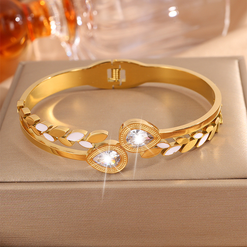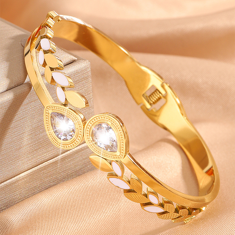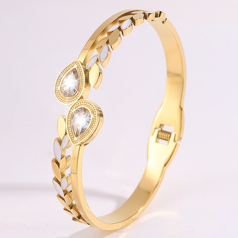 Bracelet en acier inoxydable, Acier inoxydable 304, Placage, pour femme & avec strass & creux, doré, Vendu par PC