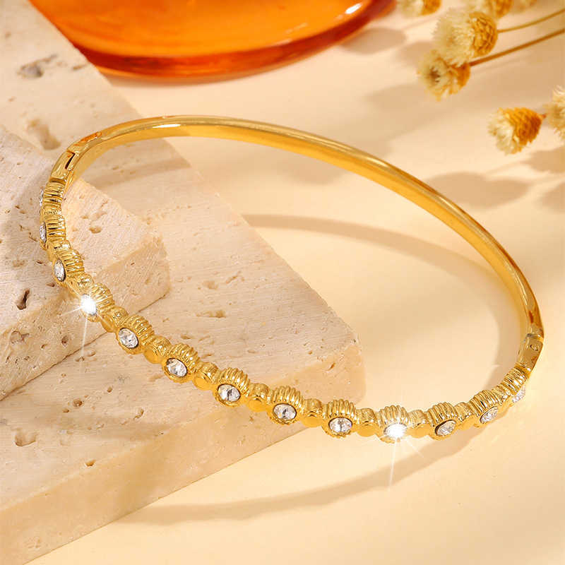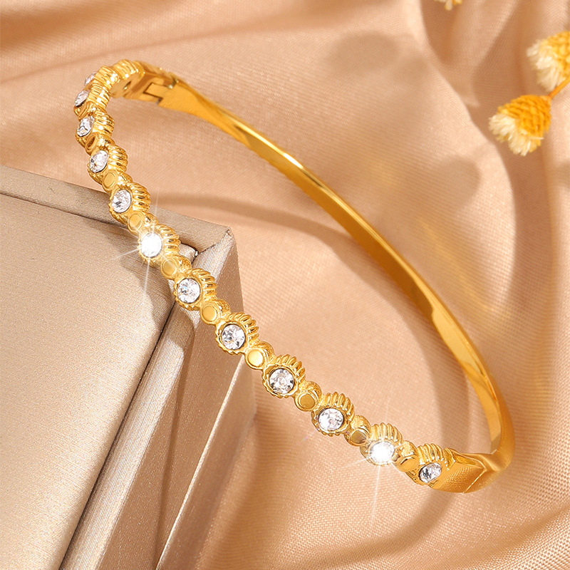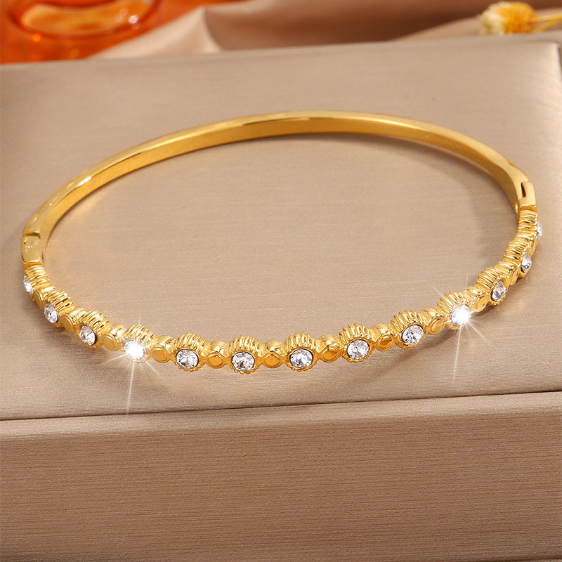 Bracelet en acier inoxydable, Acier inoxydable 304, bijoux de mode & pour femme & avec strass, doré, Vendu par PC
