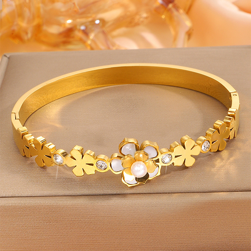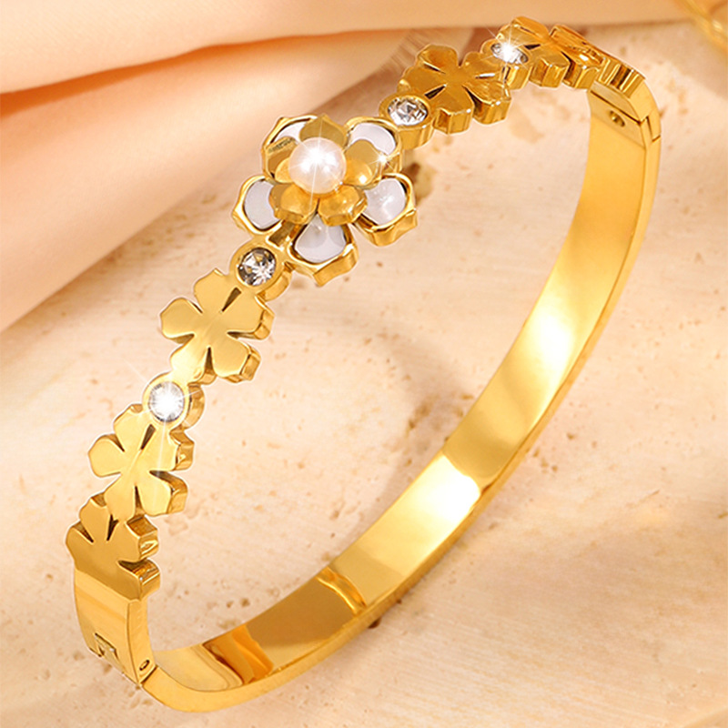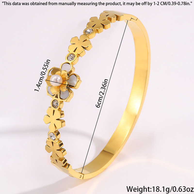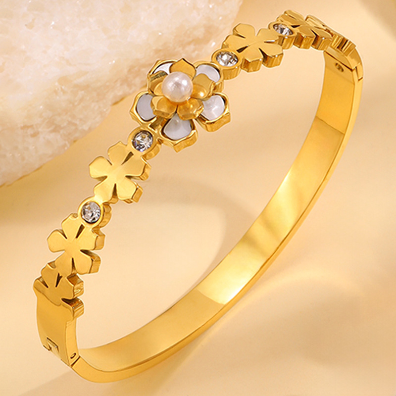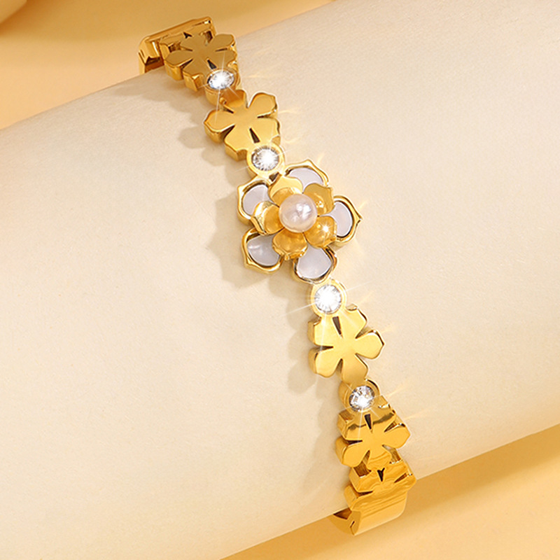 Bracelet en acier inoxydable, Acier inoxydable 304, avec coquille blanche & perle de plastique, bijoux de mode & pour femme & avec strass, doré, Vendu par PC