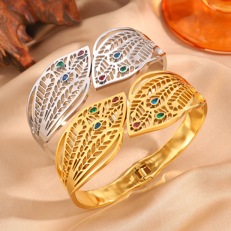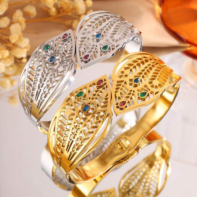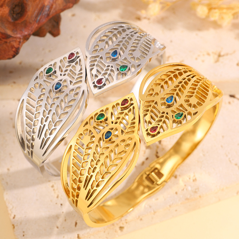 Bracelet en acier inoxydable, Acier inoxydable 304, Placage, pour femme & avec strass & creux, plus de couleurs à choisir, Vendu par PC