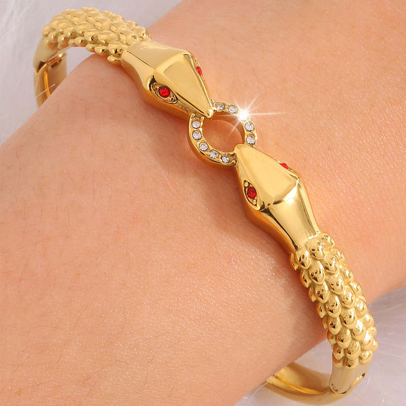 Bracelet en acier inoxydable, Acier inoxydable 304, Plaqué d'or 18K, pour femme & avec strass & creux, Vendu par PC